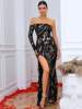 Fleepmart Sexy Black Bandeau Geometric Pattern Single Sleeve Slit Geometric Sequin Skin ny Party Dress