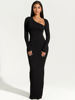 Fleepmart Sexy Black Evening Party Dress Women Elegant Fall Winter Outfits Asymmetrical Long Sleeve Night Club Party Split Maxi Dresses