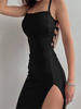 Fleepmart Sexy Black Long Bodycon Dress Women Summer Sleeveless Blackless Halter Neck Spaghetti Strap Dresses High Split Vestidos