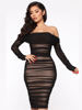 Fleepmart Elegant Beautiful Womens Sexy Off Shoulder Sheer Mesh Long Sleeve Party Midi Christmas Dress