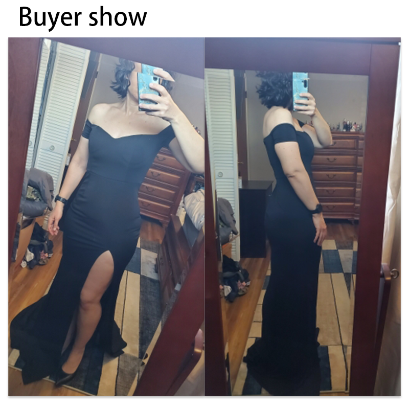 Fleepmart Sexy Black Red Off Shoulder Bridesmaid Tight Packet Hips Slash Neck High Split Wedding Prom Long Backless Party Dress