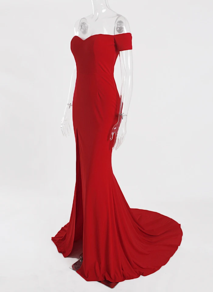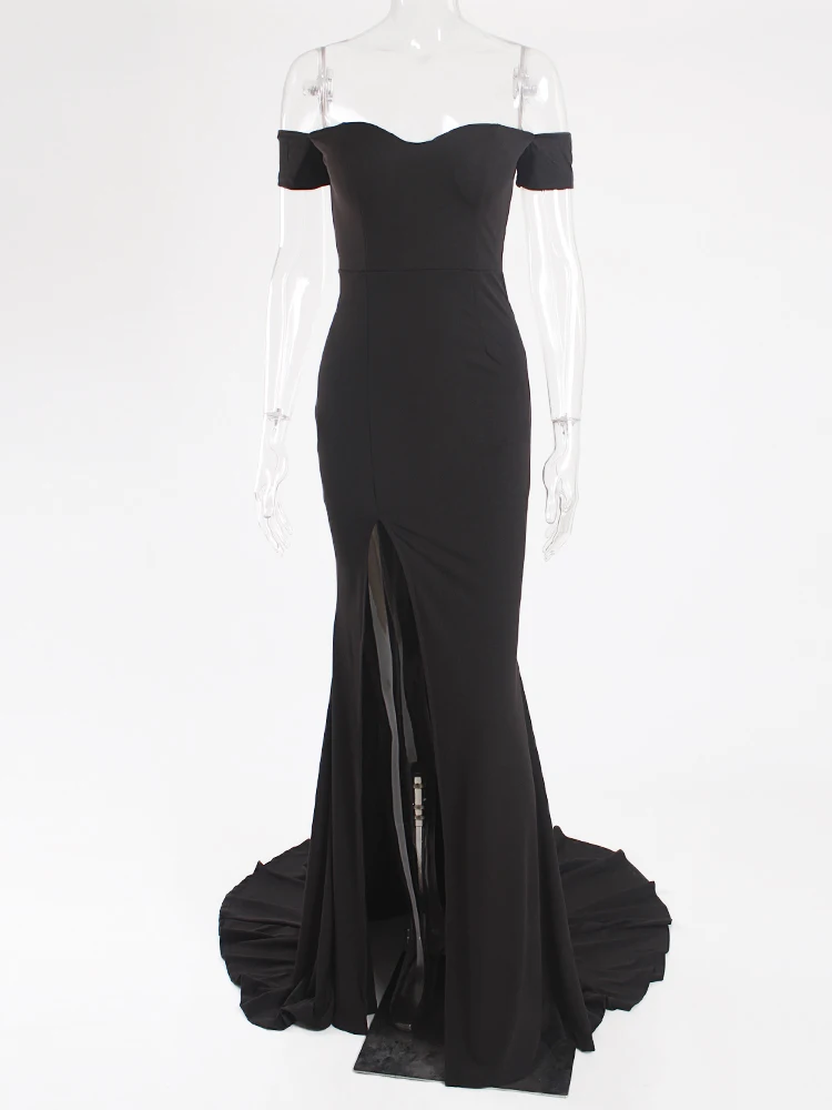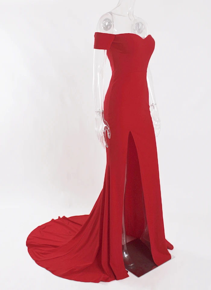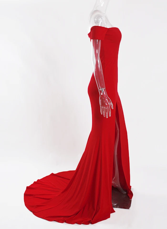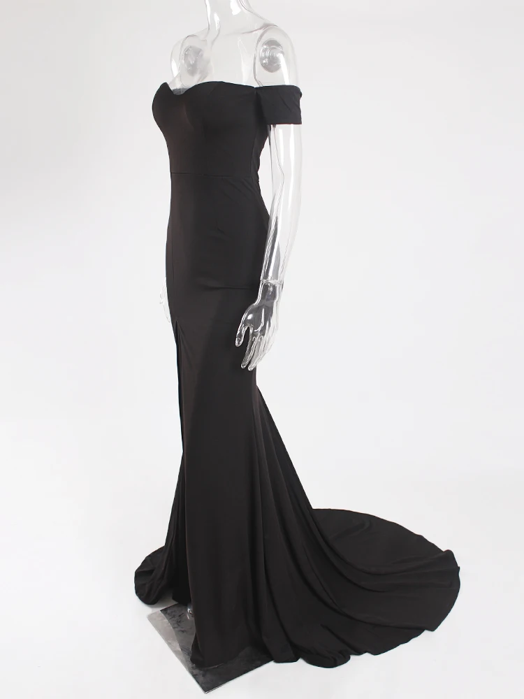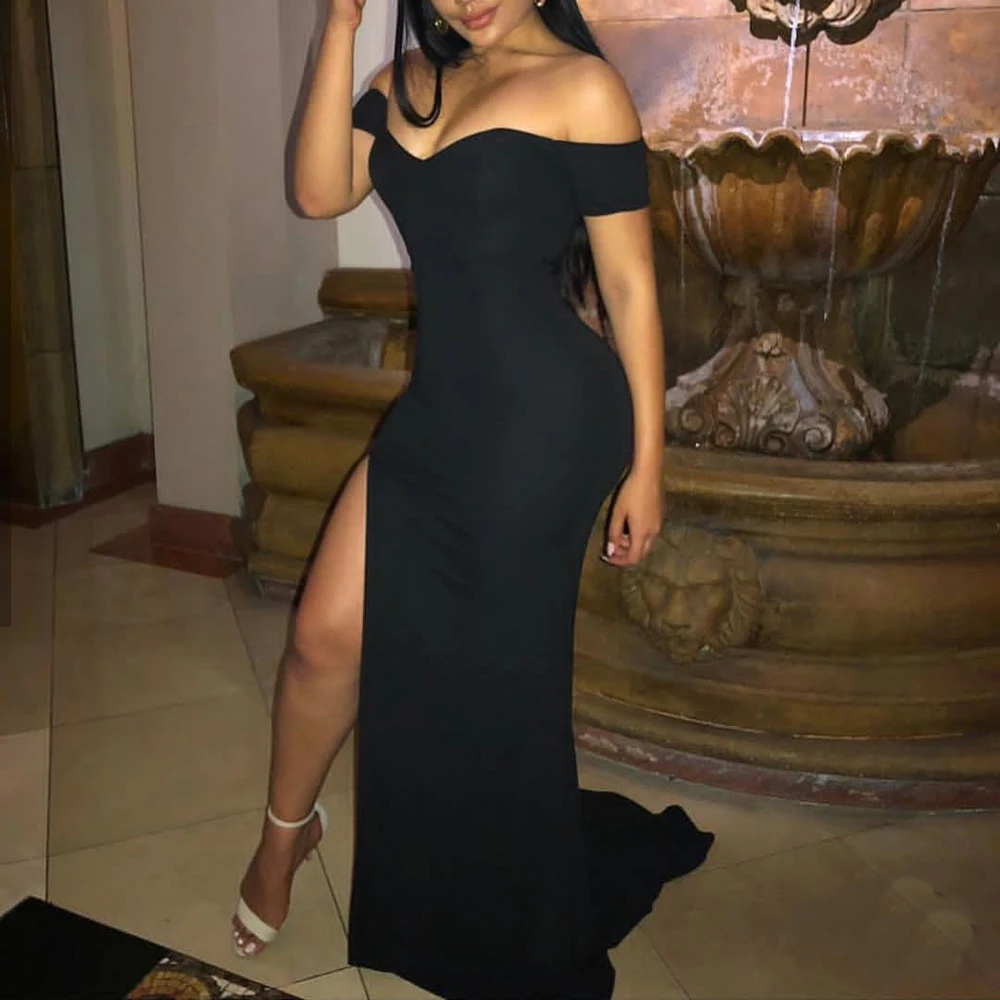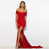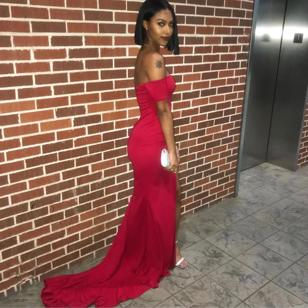 Fleepmart Sexy Black Red Off Shoulder Bridesmaid Tight Packet Hips Slash Neck High Split Wedding Prom Long Backless Party Dress