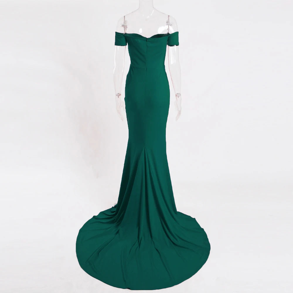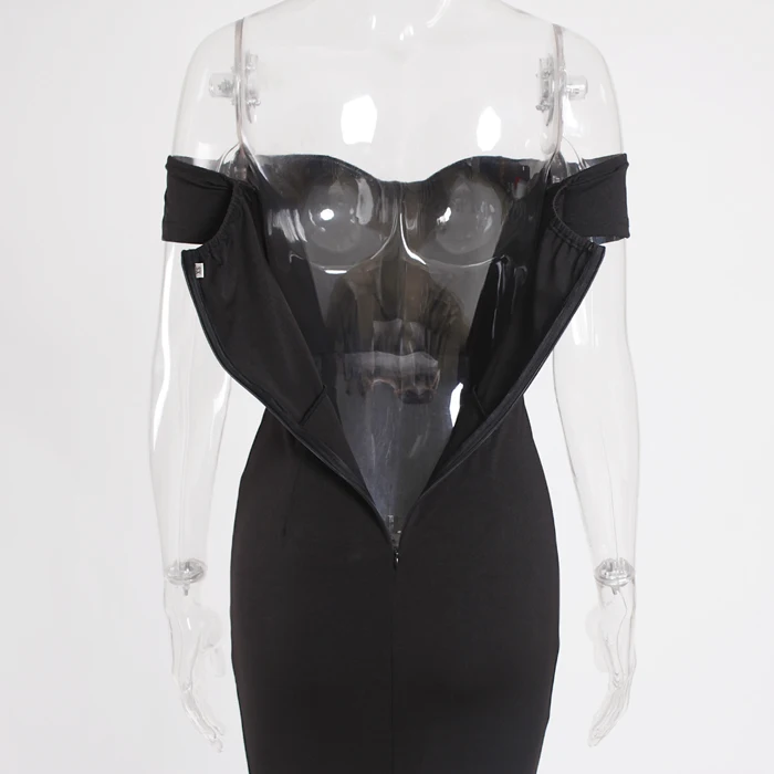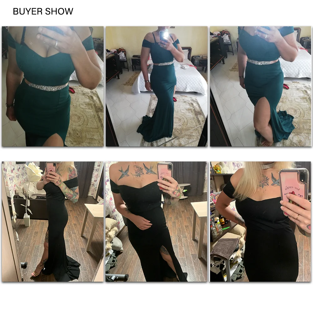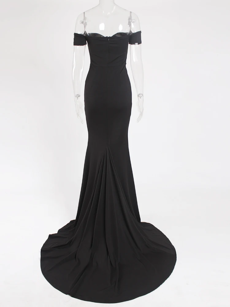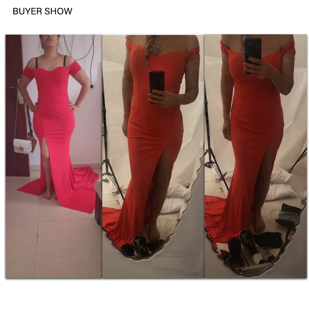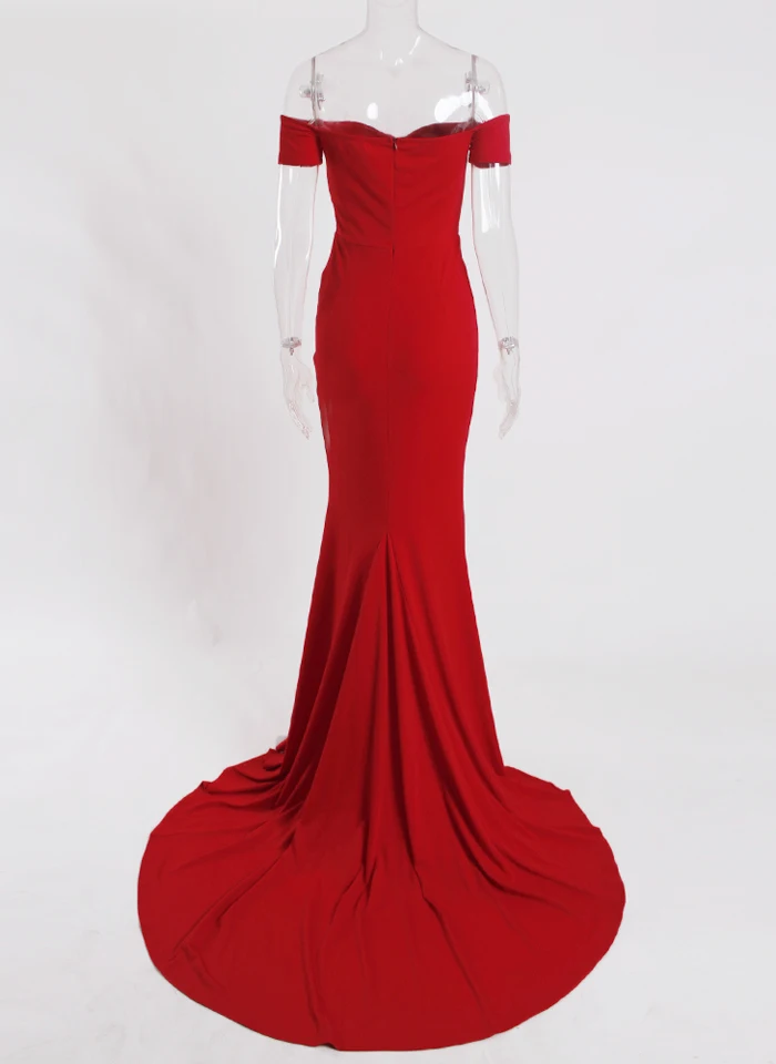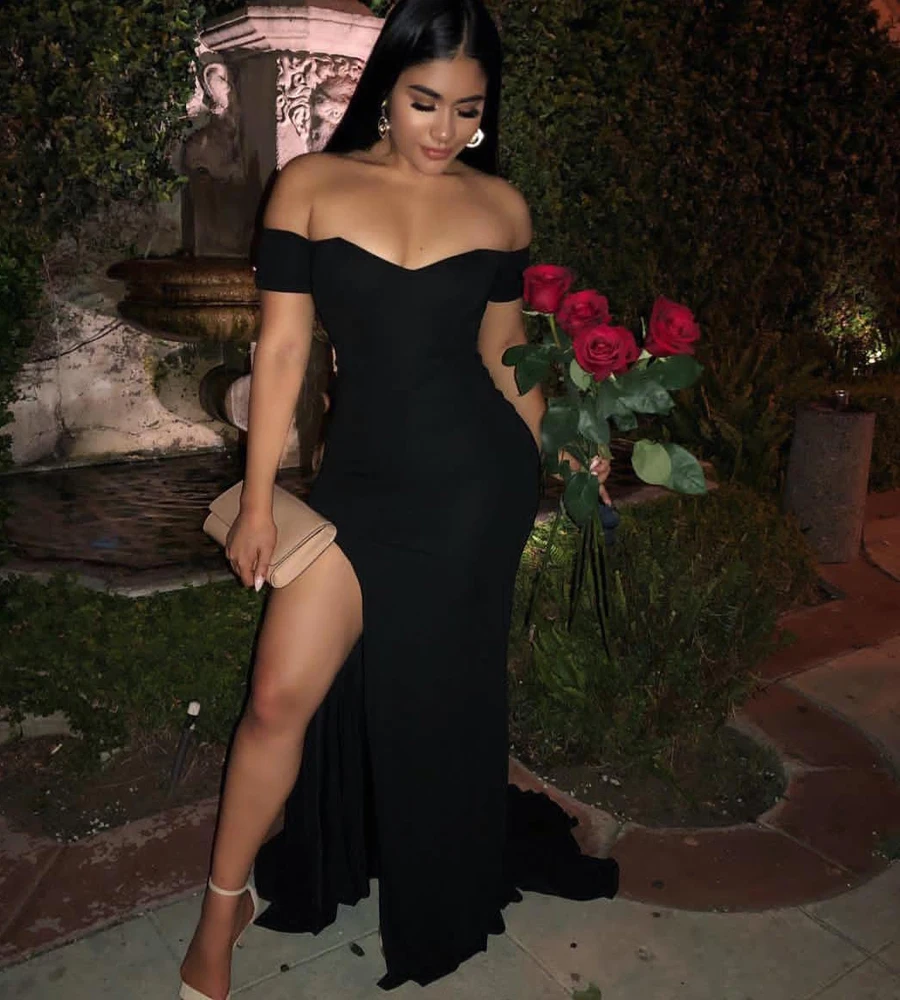Fleepmart Sexy Black Red Off Shoulder Bridesmaid Tight Packet Hips Slash Neck High Split Wedding Prom Long Backless Party Dress