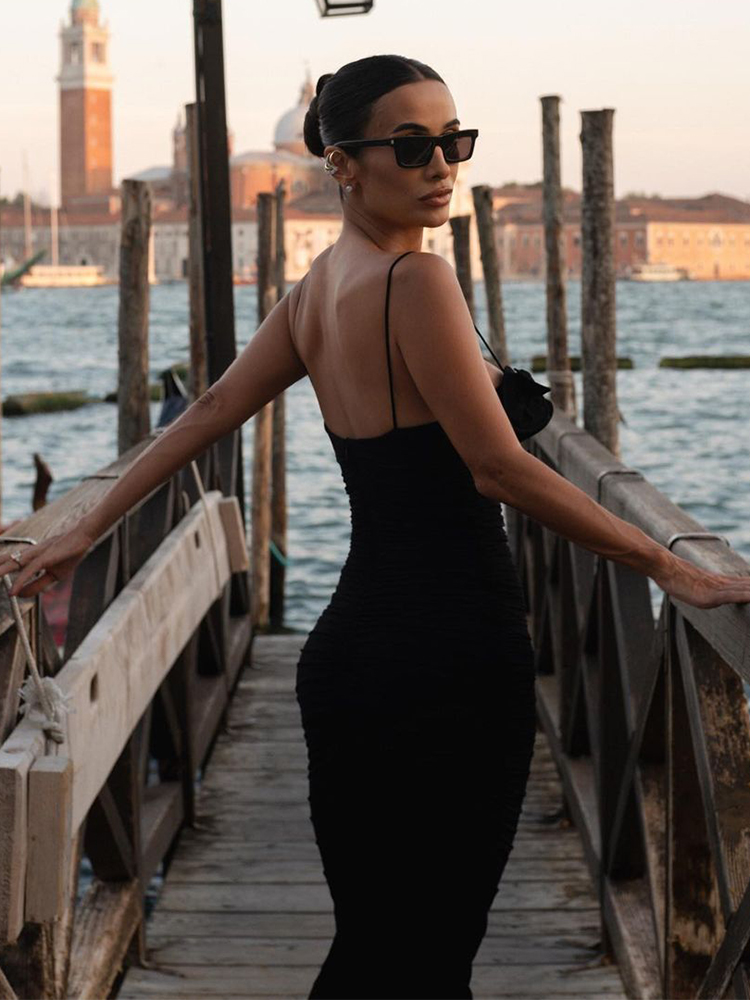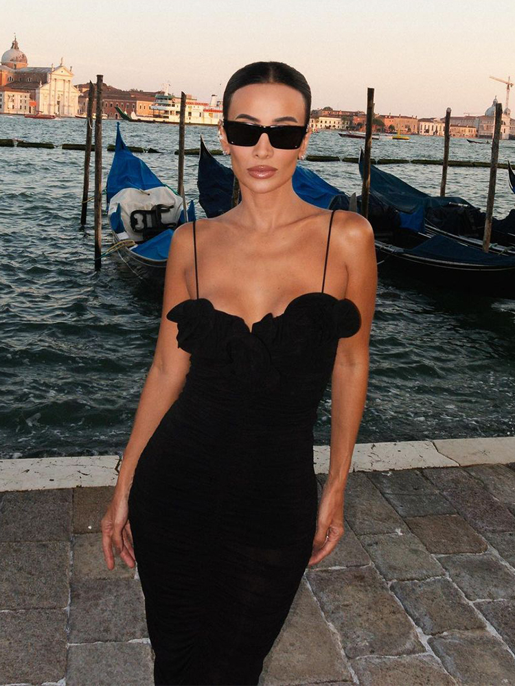 Fleepmart Sexy Black Ruffle Edge Bodycon Long Women High Waist Sling Dress Beach Club Party Robes