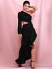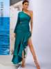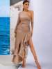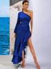 Fleepmart Sexy Blue Off-Shoulder Side Whit Split Cut Out Ruffled Long Sleeve Maxi Dress