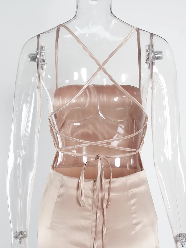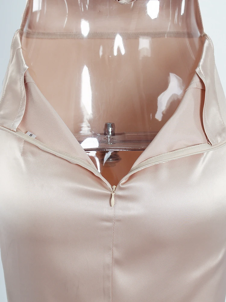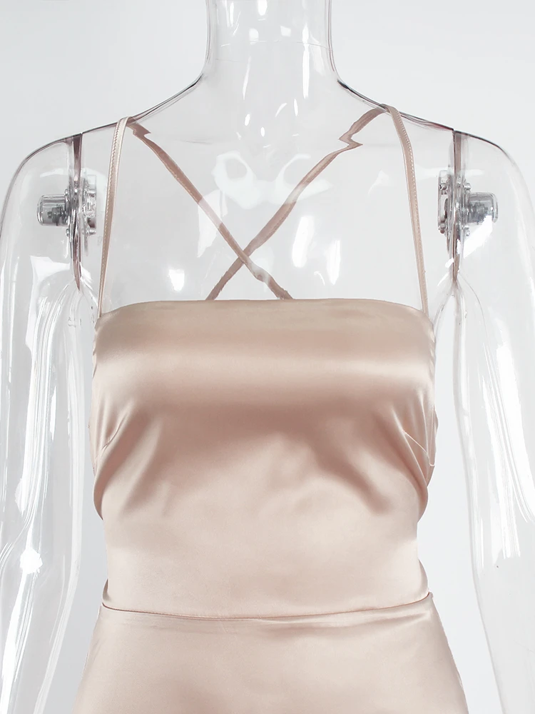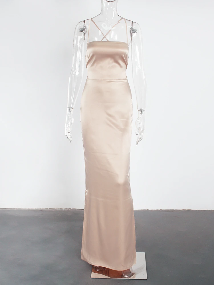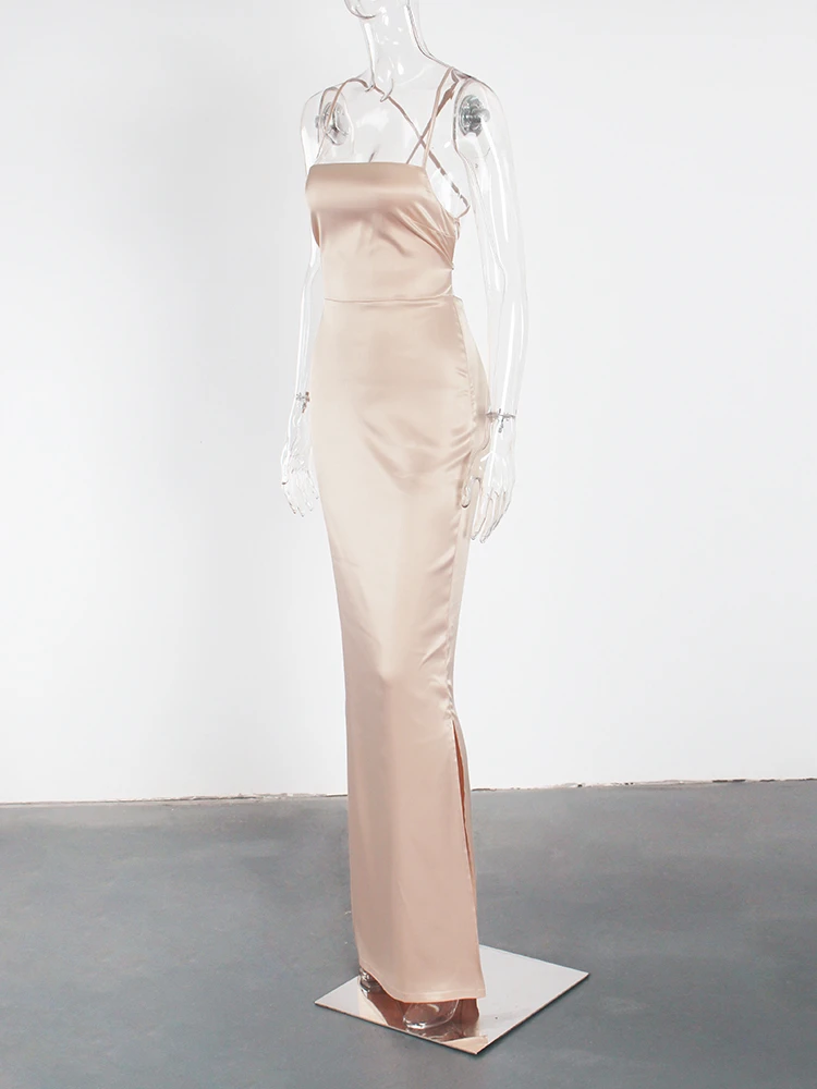 Fleepmart Sexy Champagne Summer Long Satin Maxi Dress Side Slits Backless Lace Up Square Neck SleevelessThere are no reviews yet