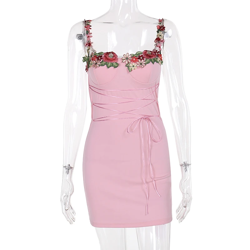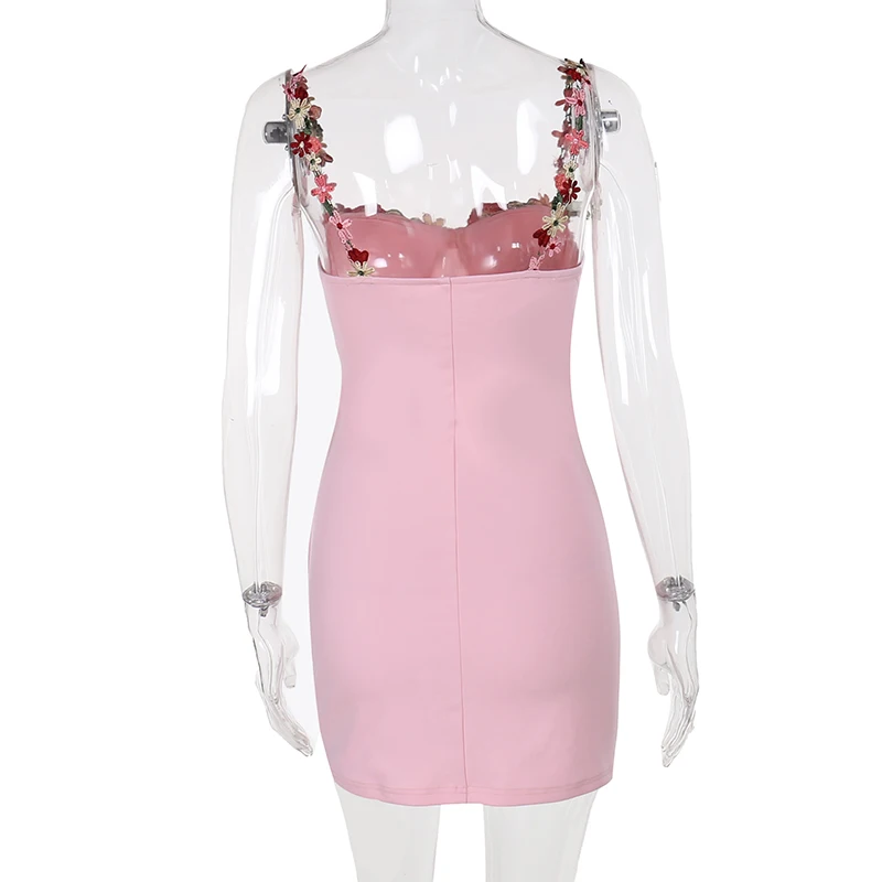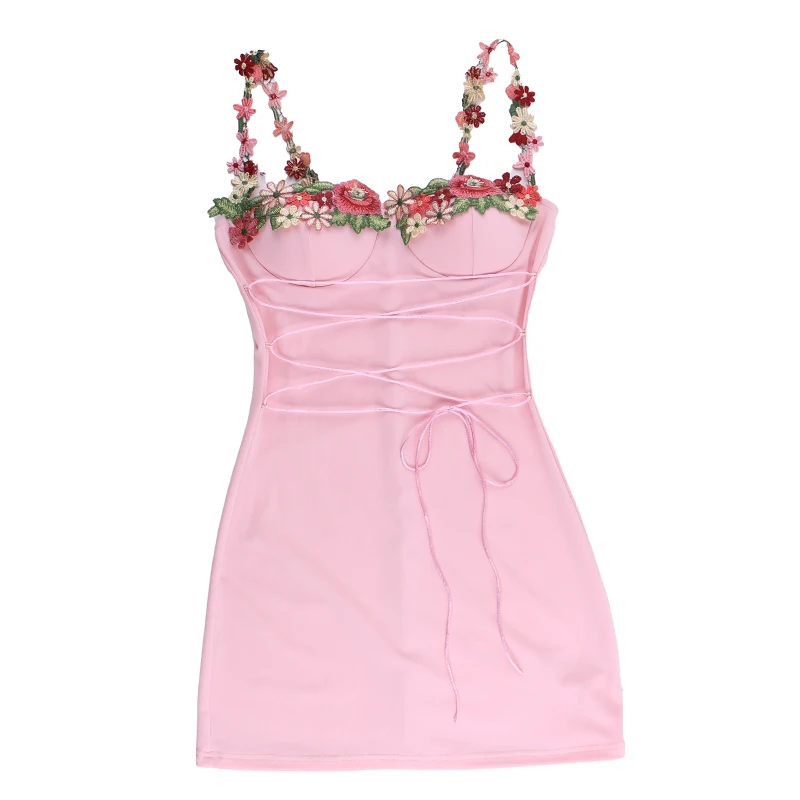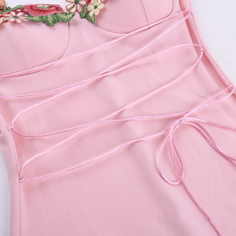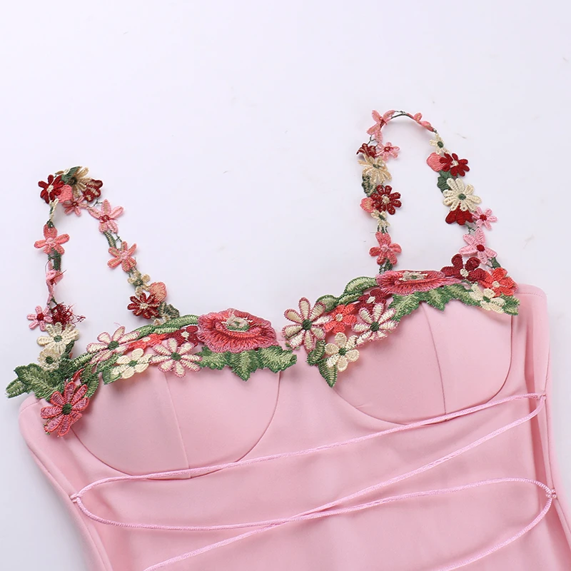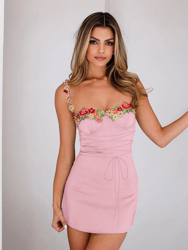 Fleepmart Sexy Chest Cup Appliques Party Dress Women Summer Sleeveless Backless Spaghetti Strap Satin Elegant Slim Dresses