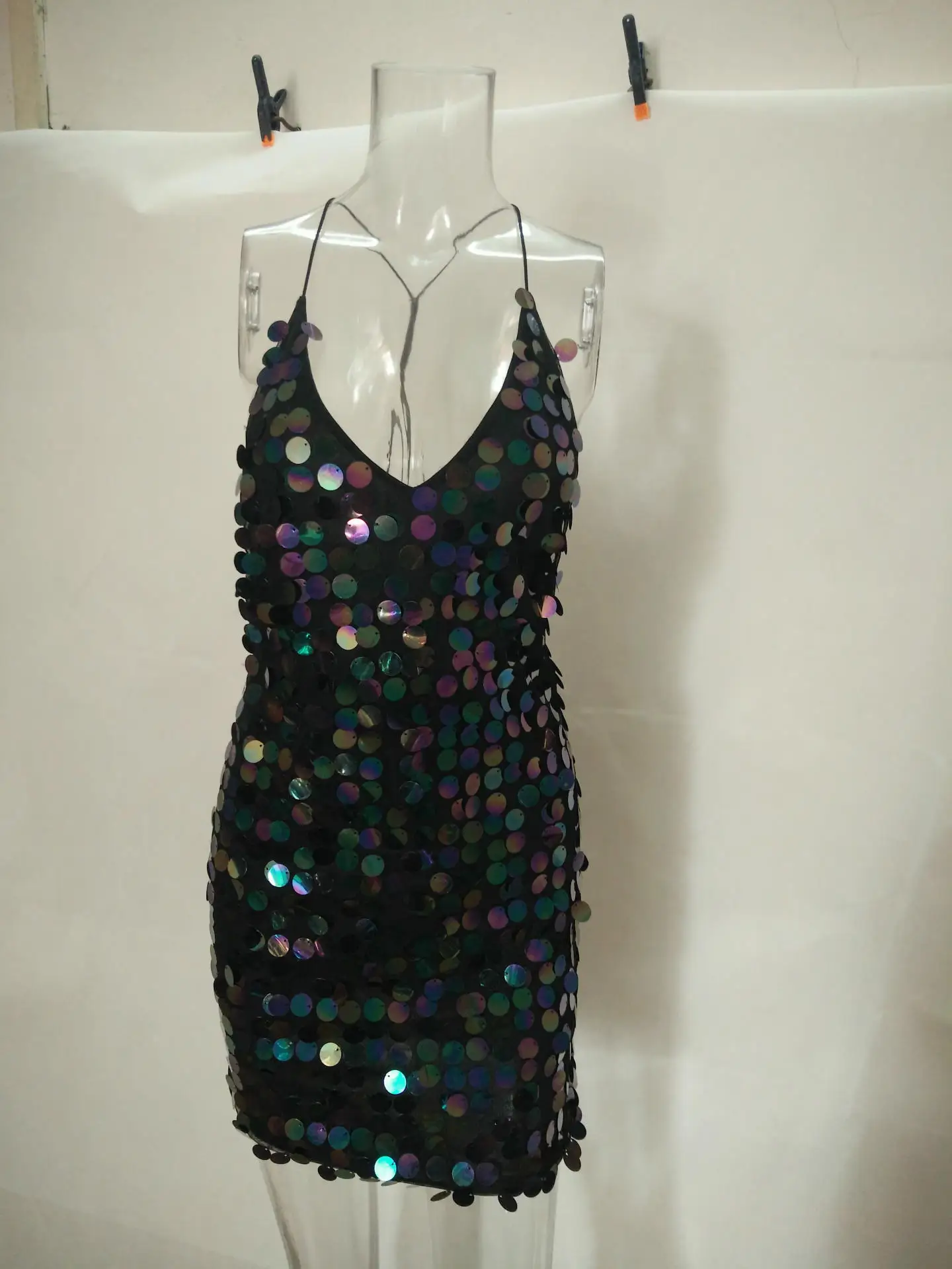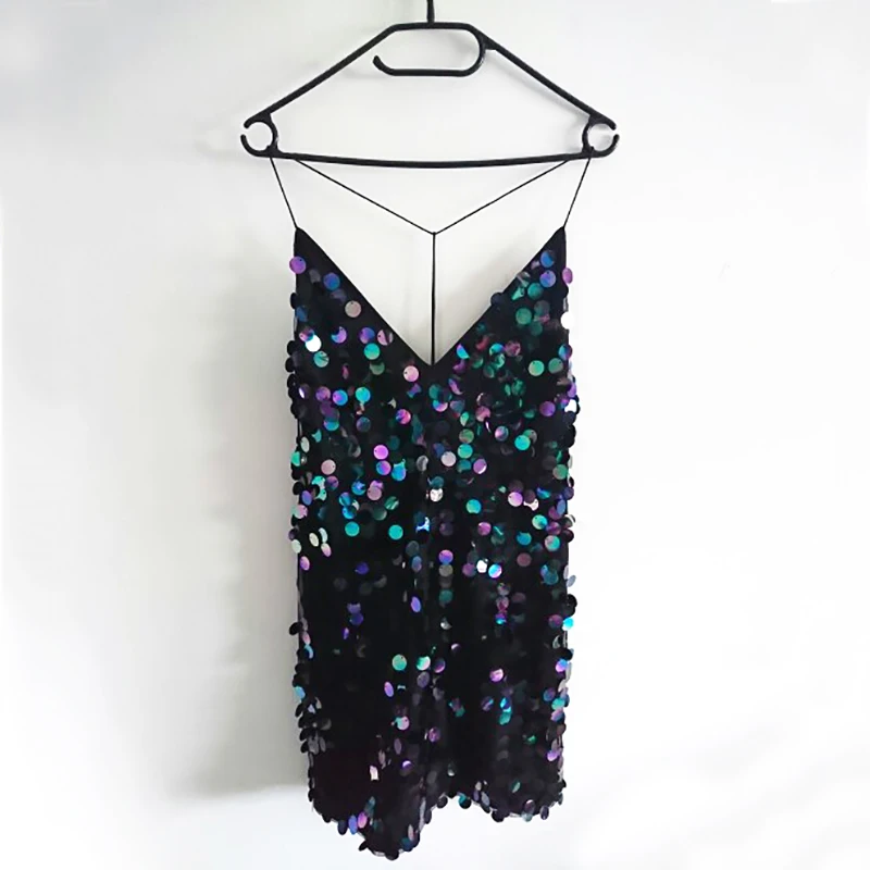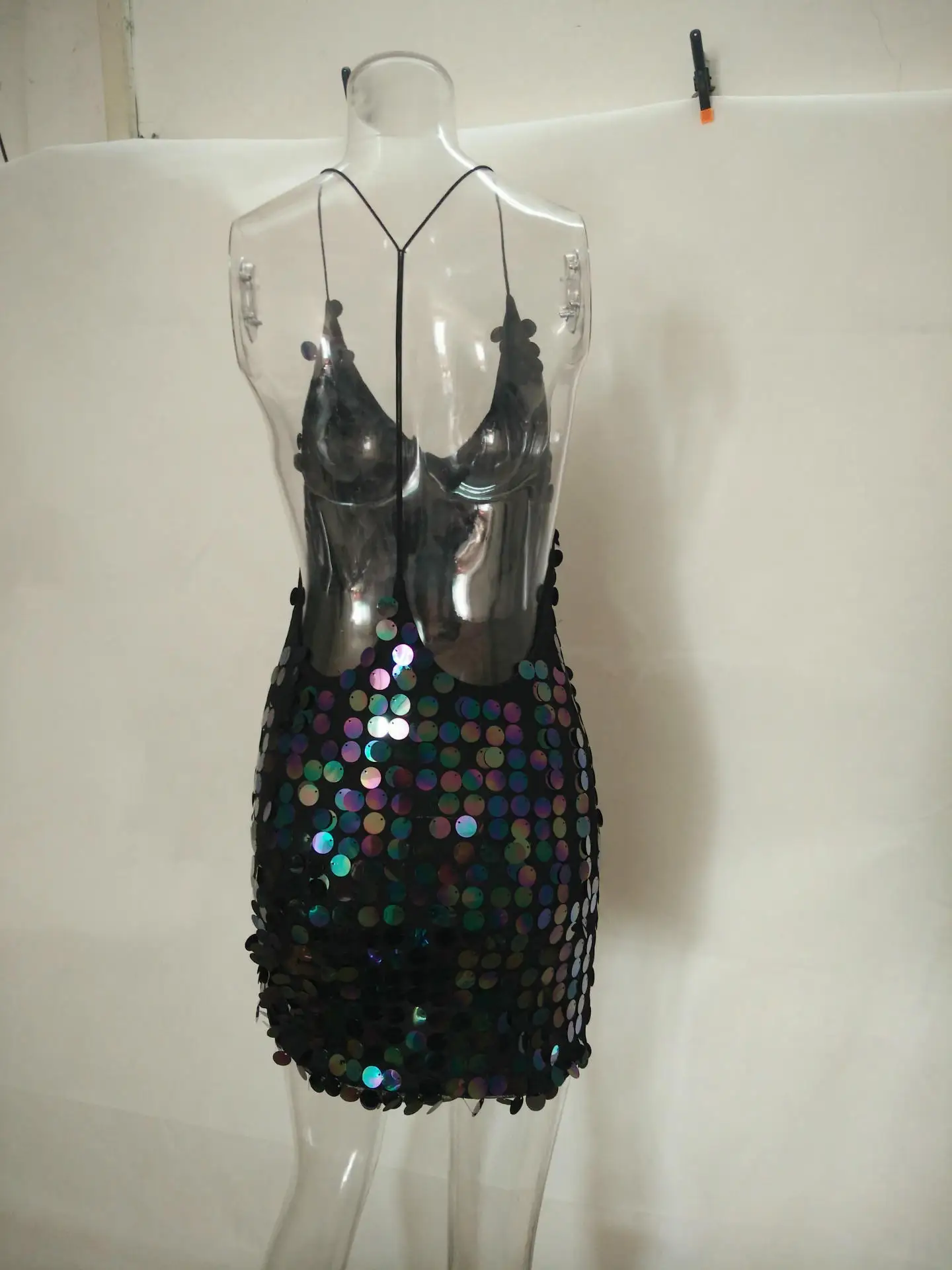 Fleepmart Sexy Club Sequins Glitter Straps Short Cocktail Party Disco Dance Bling Nightclub Dress Y2K