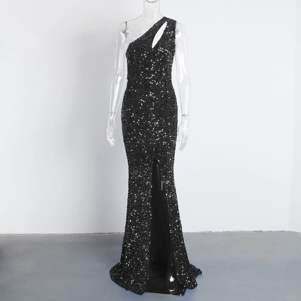 Fleepmart Sexy Cut Out Split Stretch Sequin Formal Party Dress Sleeveless Floor Length Bodycon Evening Night Out Gown Royal Blue Red Black