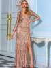 Fleepmart Sexy Deep V-Neck Cut Split Gold Geometric Sequins Skinny Party Maxi Dress