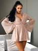Fleepmart Sexy Deep V-Neck Open Back Pink Sequins Flared Long Sleeves X Shape Party Mini Dress