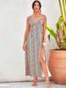 Fleepmart Sexy Deep V-Neck Red Scorpion Spotted Sleeveless Open Back Split A-Line Spring Mid-Length Dress