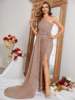 Fleepmart Sexy Diagonal Neck Sleeveless Slim Fit Sequin Slit Evening Maxi Dress