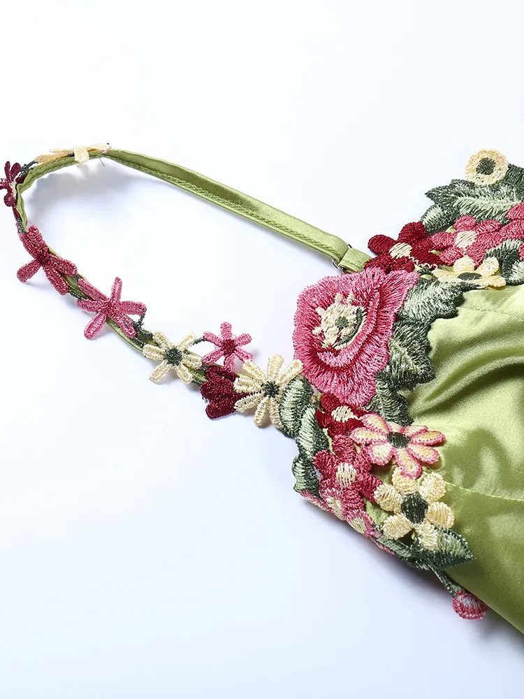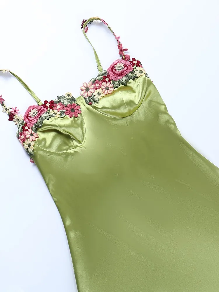 Fleepmart Sexy Embroidered Lace Satin Hip Bodycon Dress Women’s Summer Floral Satin Slip Dress Vacation Elegant Clubwear 2023