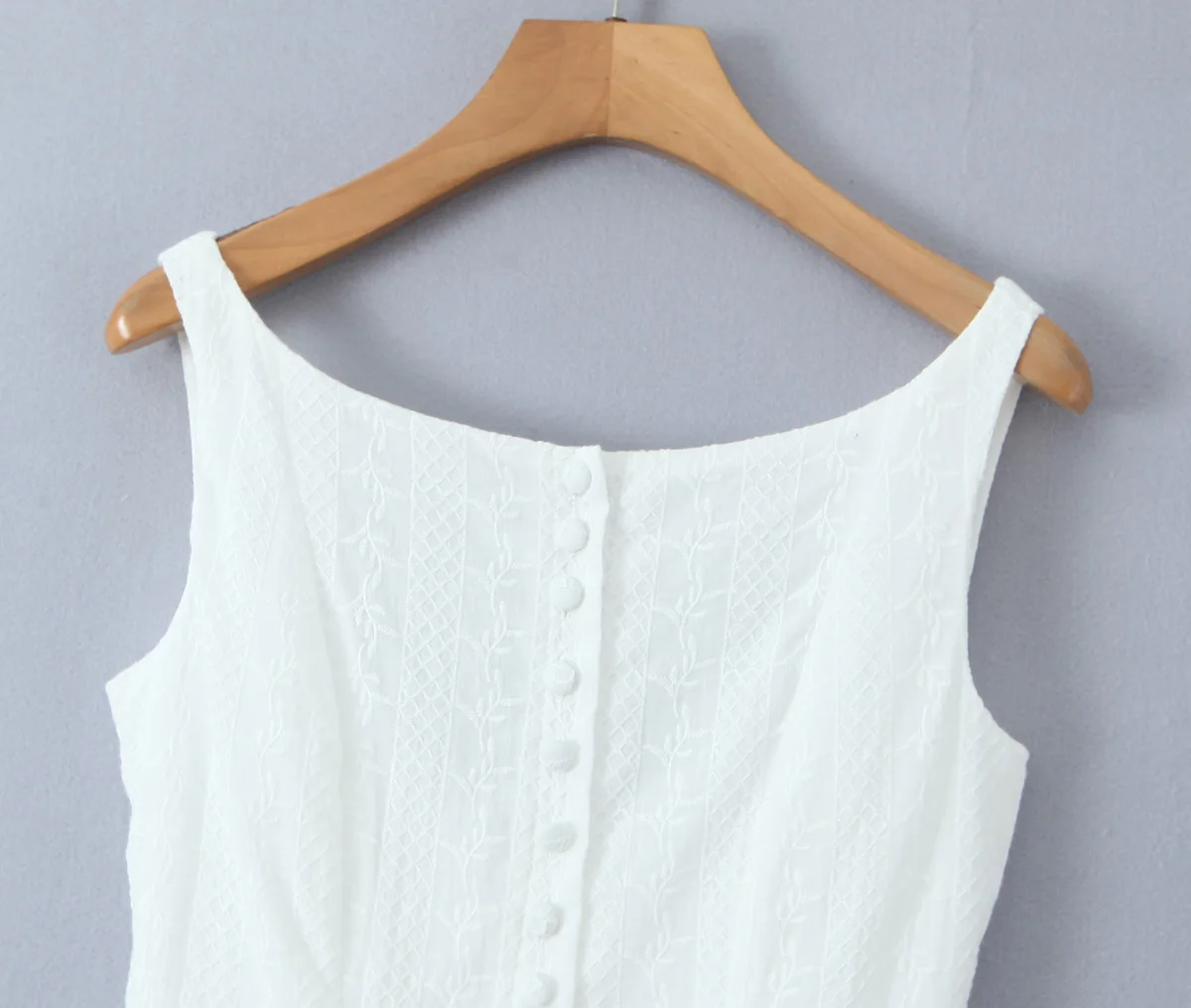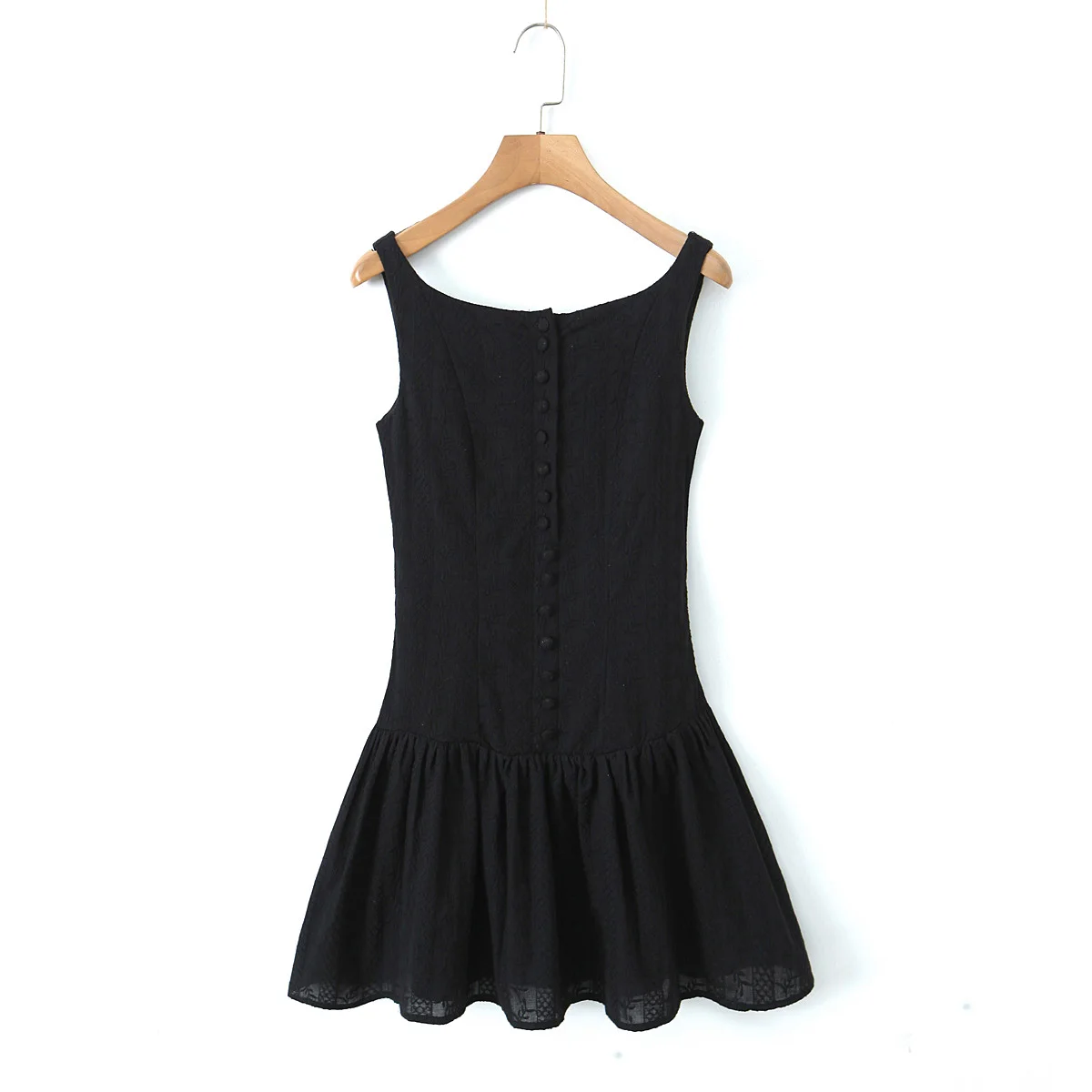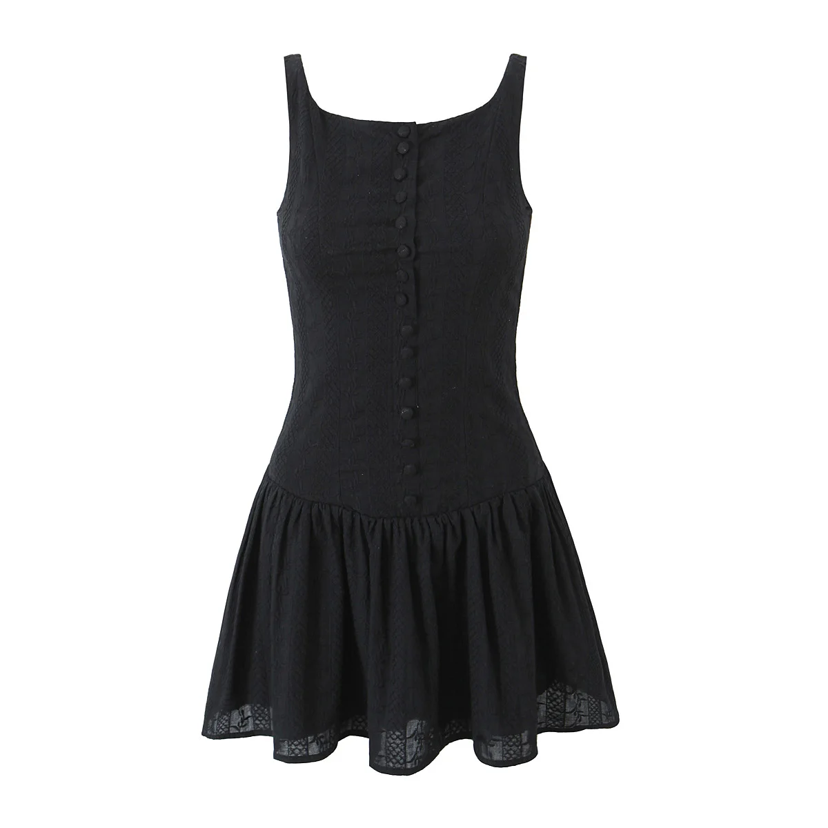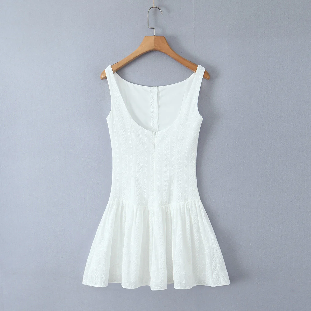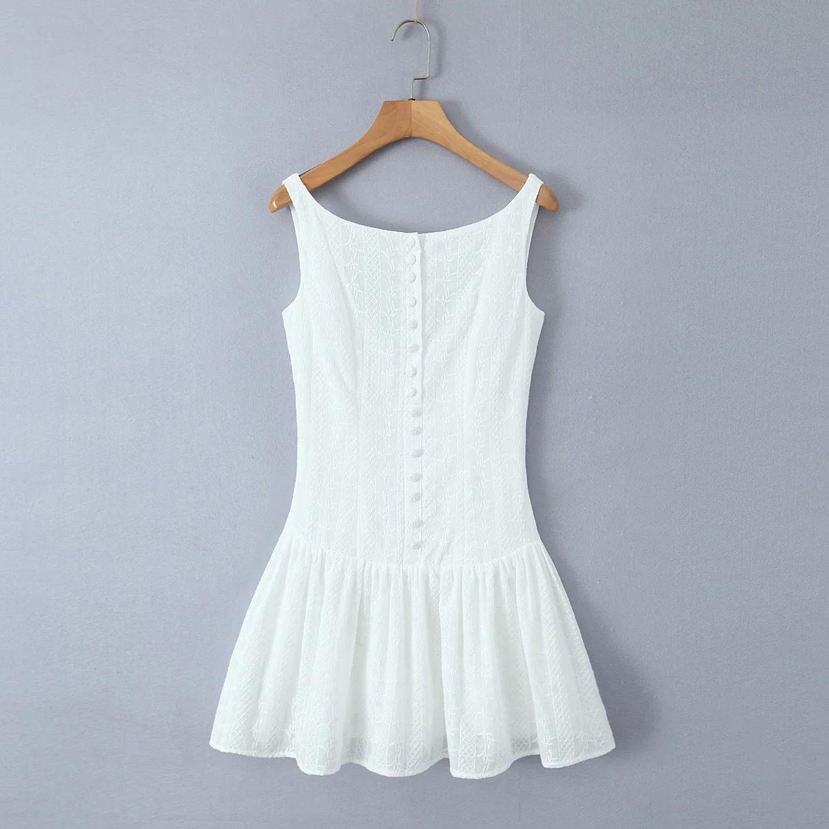 Fleepmart Sexy Embroidery Lace Low Waist Mini Tank Women Open Buttons Neck Sleeveless Ruched Party Robe