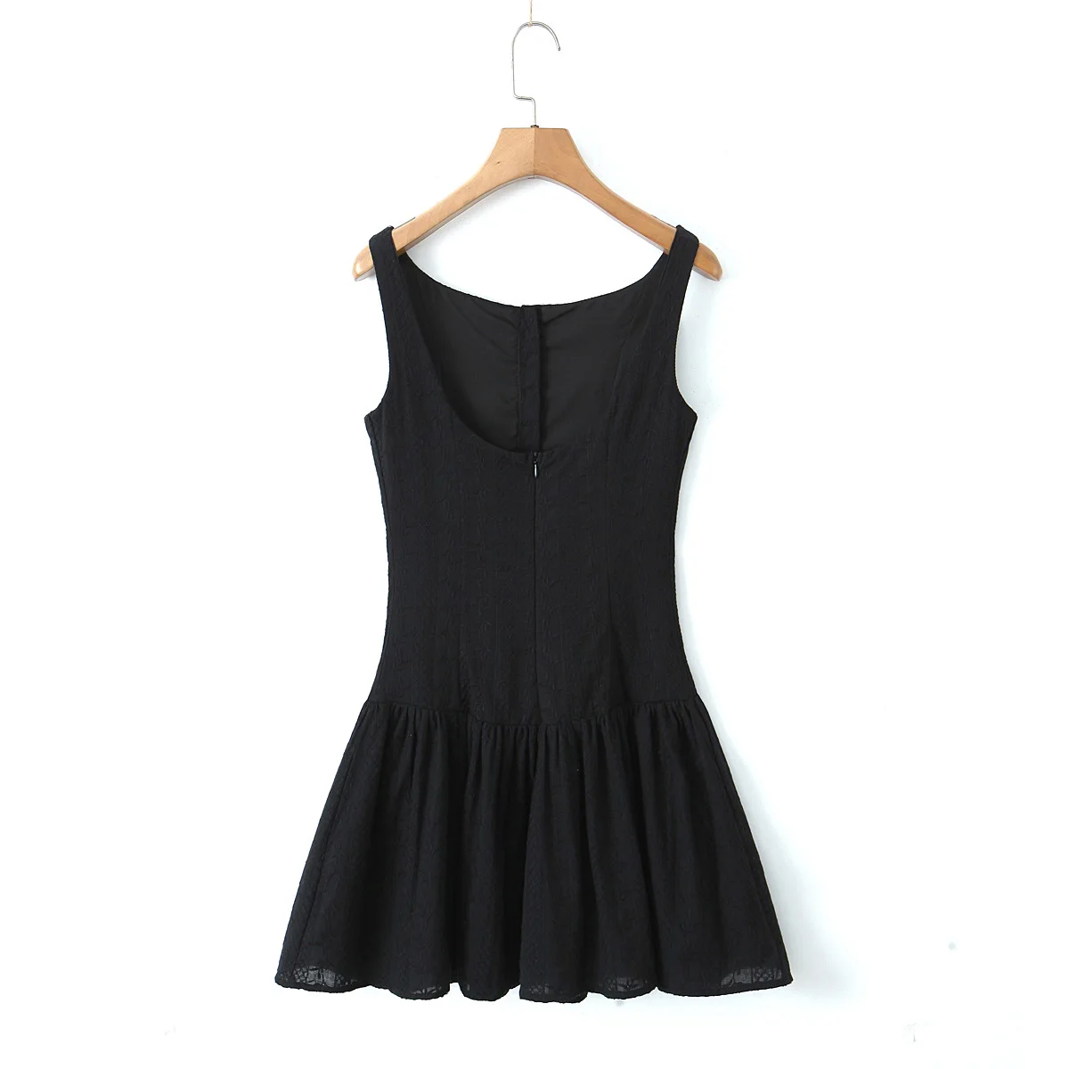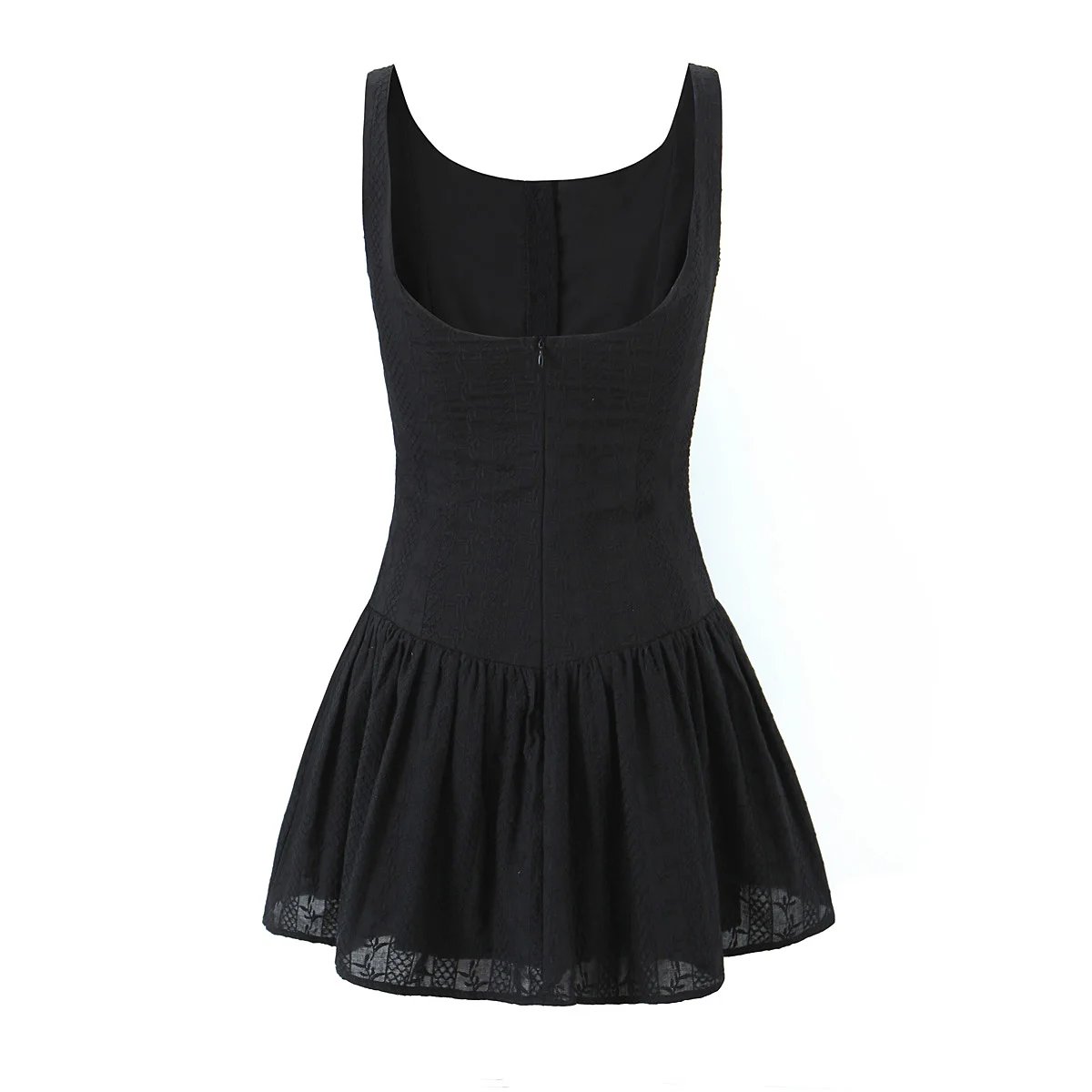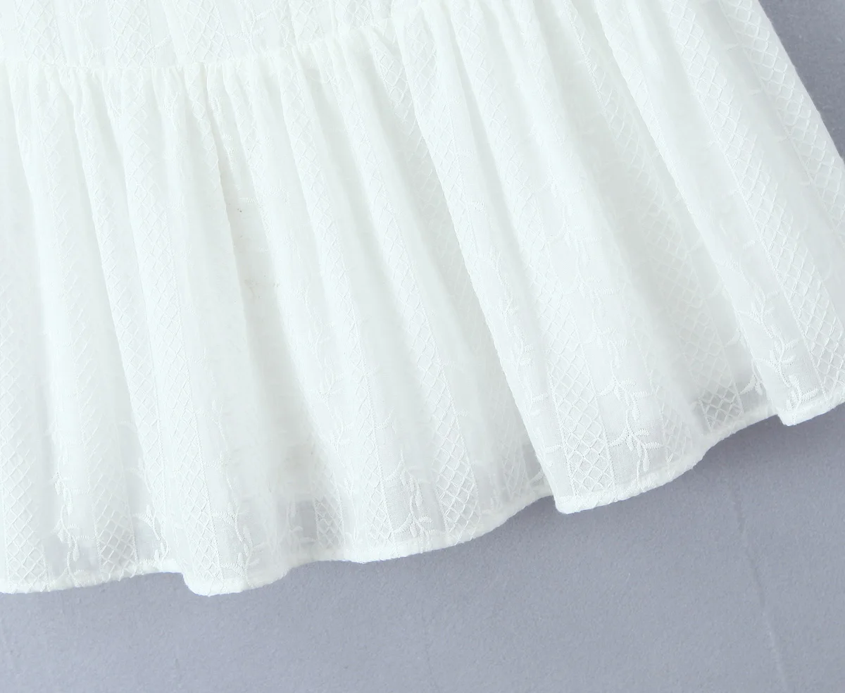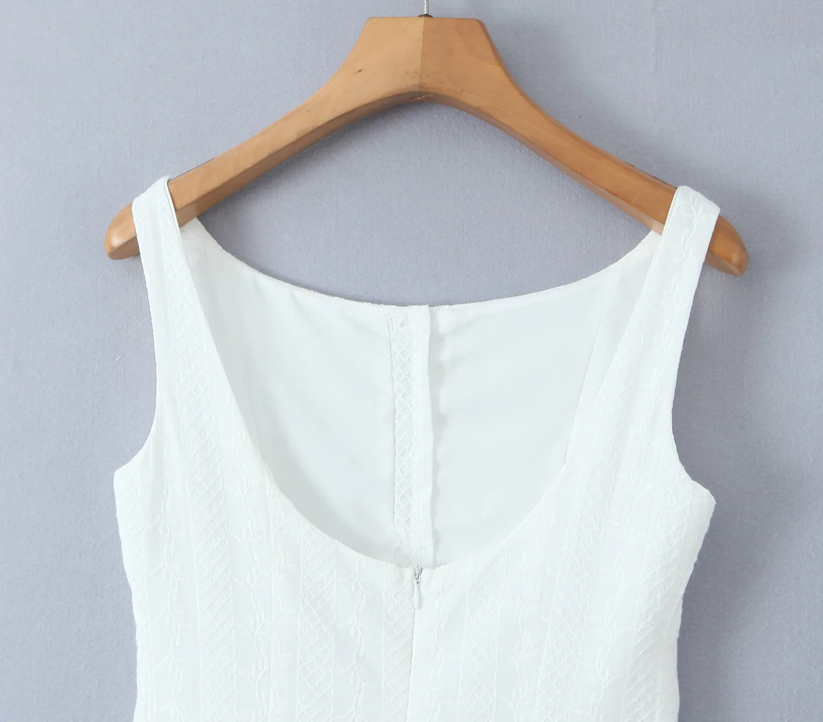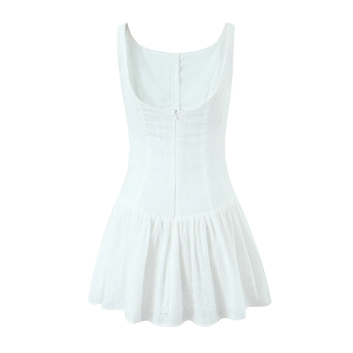Fleepmart Sexy Embroidery Lace Low Waist Mini Tank Women Open Buttons Neck Sleeveless Ruched Party Robe
