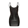 Fleepmart Sexy Faux Leather Dress Backless Club Party Short Dress Solid Black Wet Look Latex Bodycon Push Up Bra Mini Micro Dress