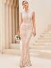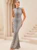 Fleepmart Sexy Gold Stand Collar Sequin Corset Sleeveless Geometric Fishtail Party Maxi Dress