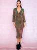 Fleepmart Sexy Gradient Dark V-neck Sequins Lantern Sleeve Party Knee Dress