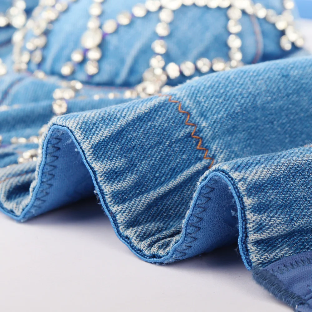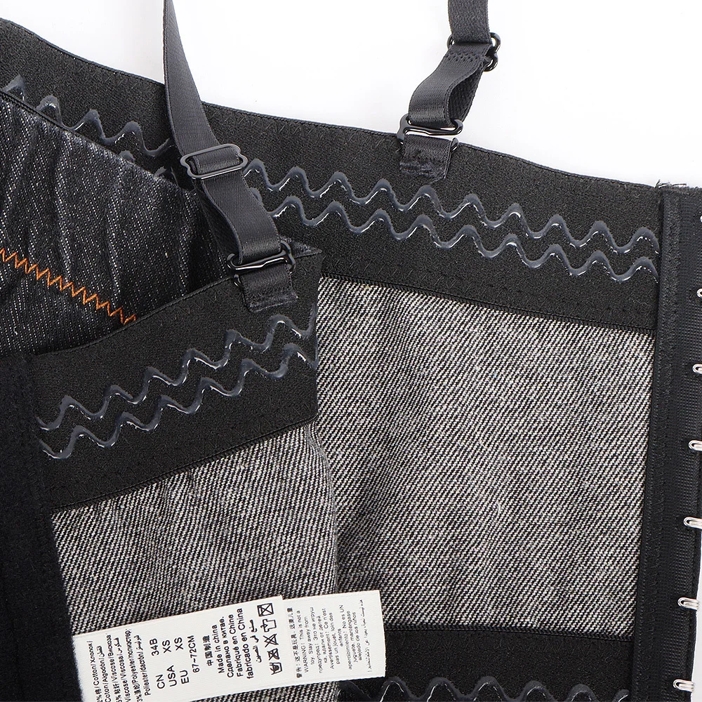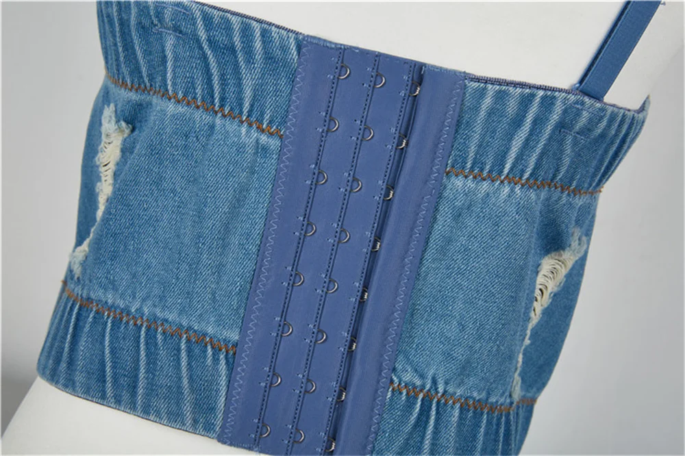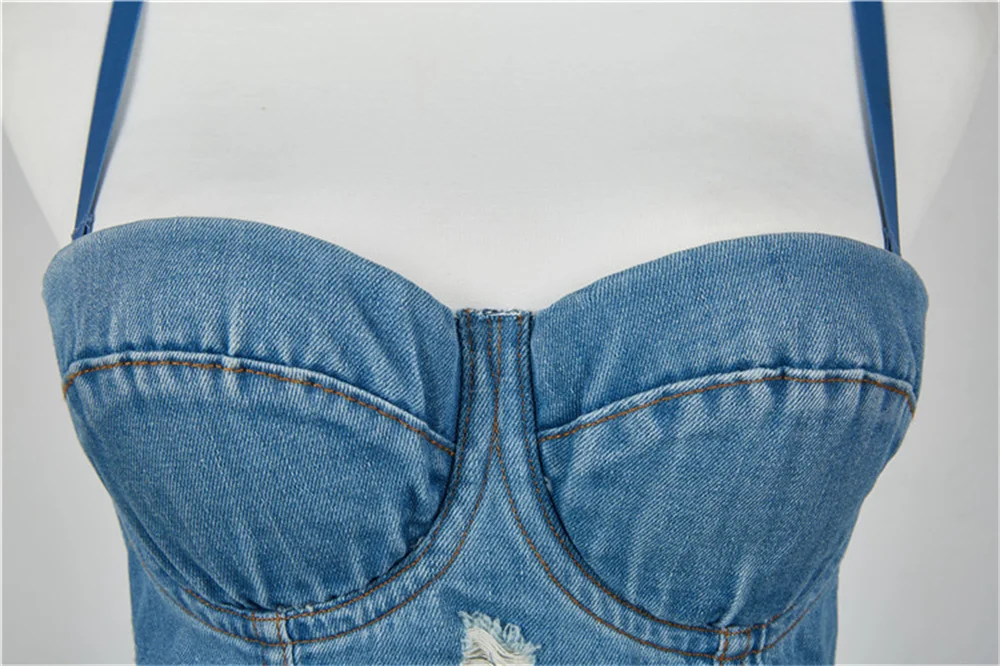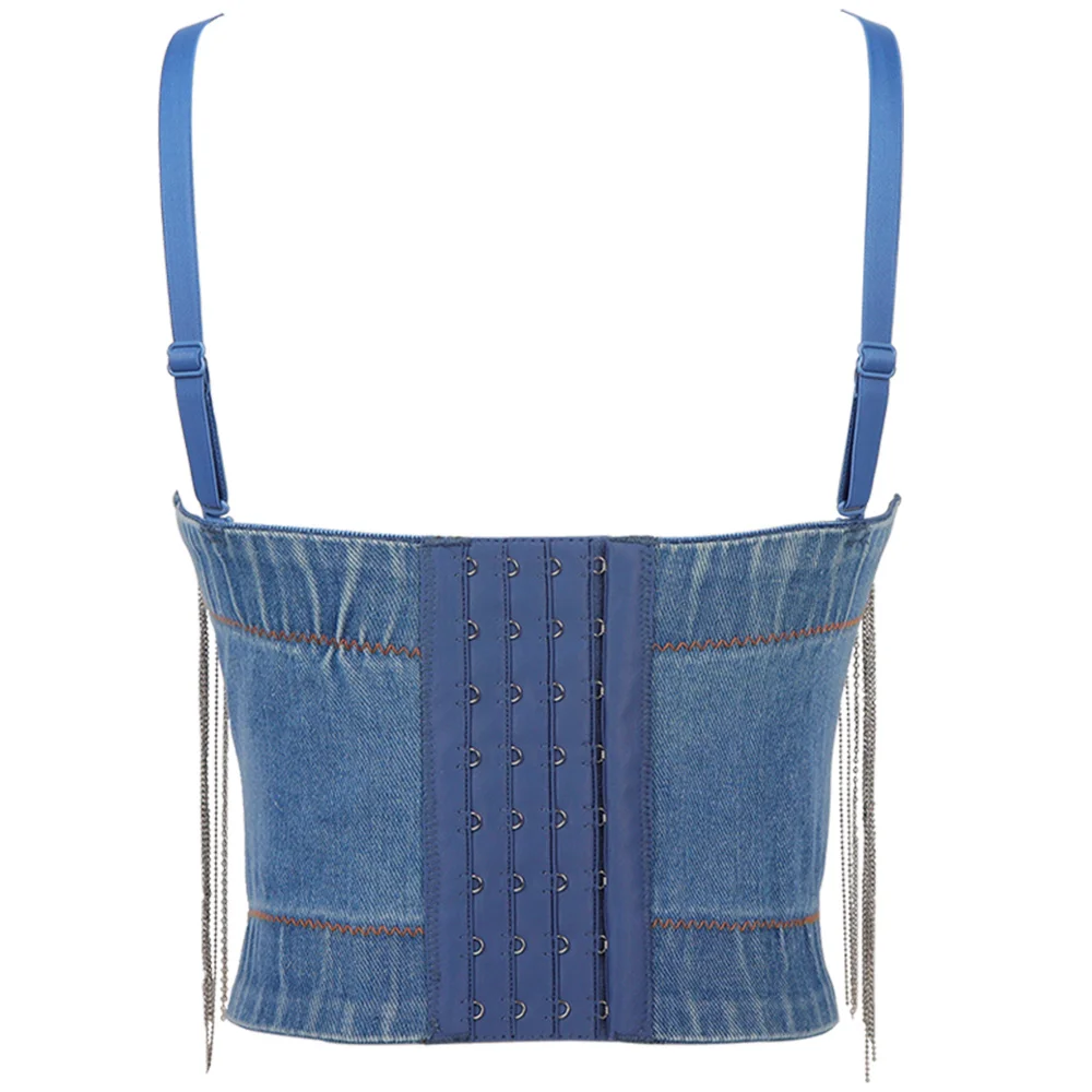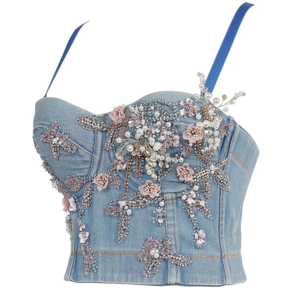 Fleepmart Sexy halter black Denim Rhinestone corset crop top women summer glitter bustier y2k rave club Party tank top womens tube tops