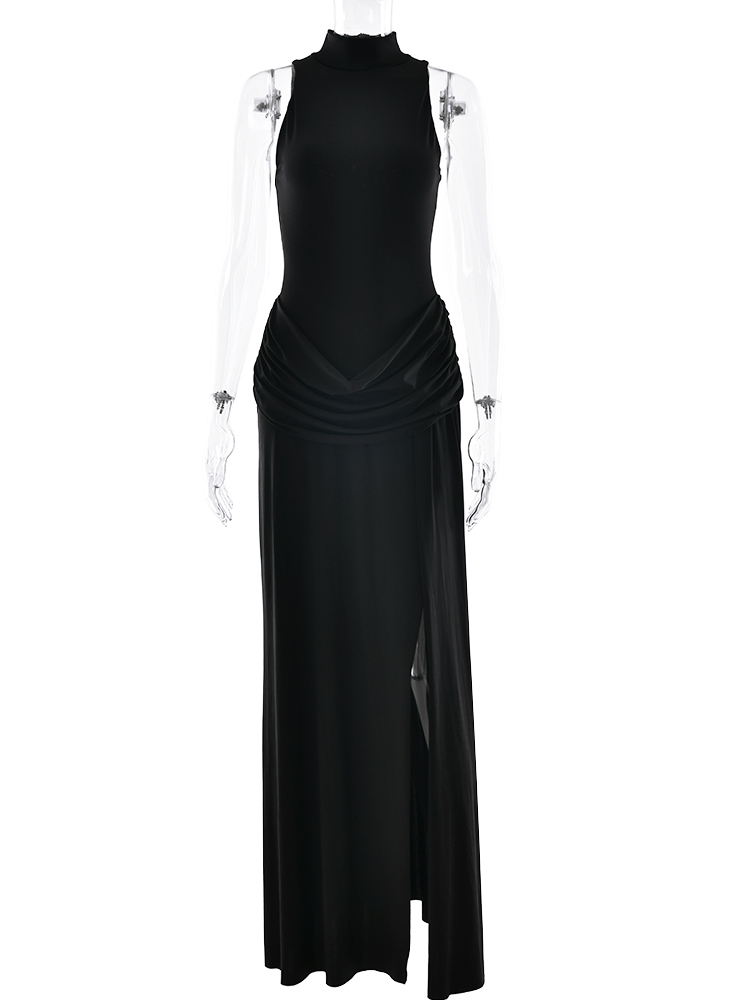 Fleepmart Sexy High Slit Turtleneck Women Maxi Dress White Sleeveless High Waist Dress Femme Summer Slim Elegant Party Clubwear