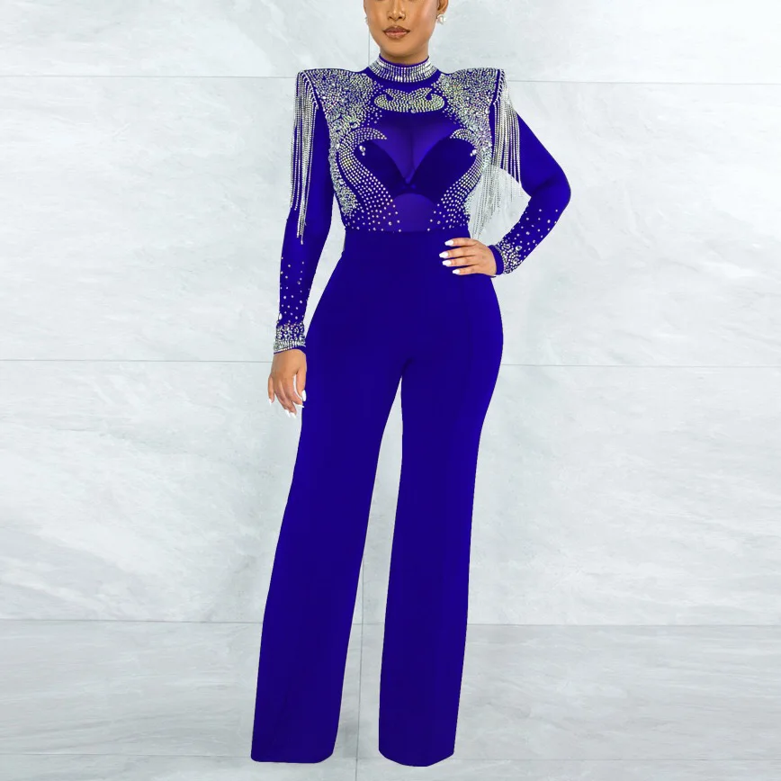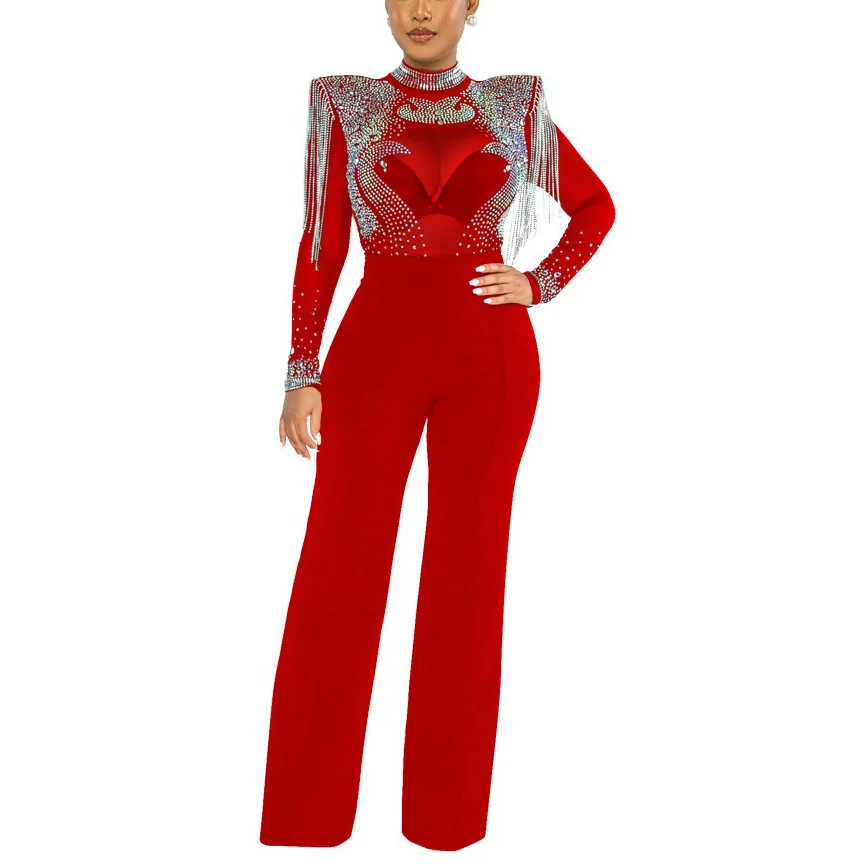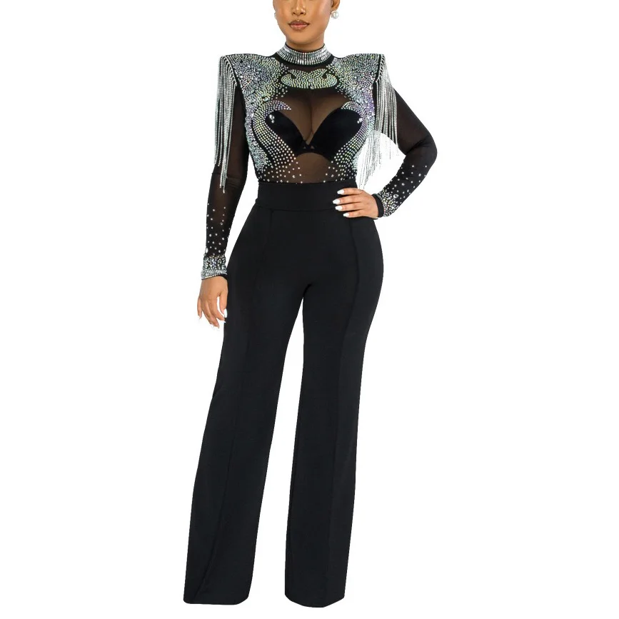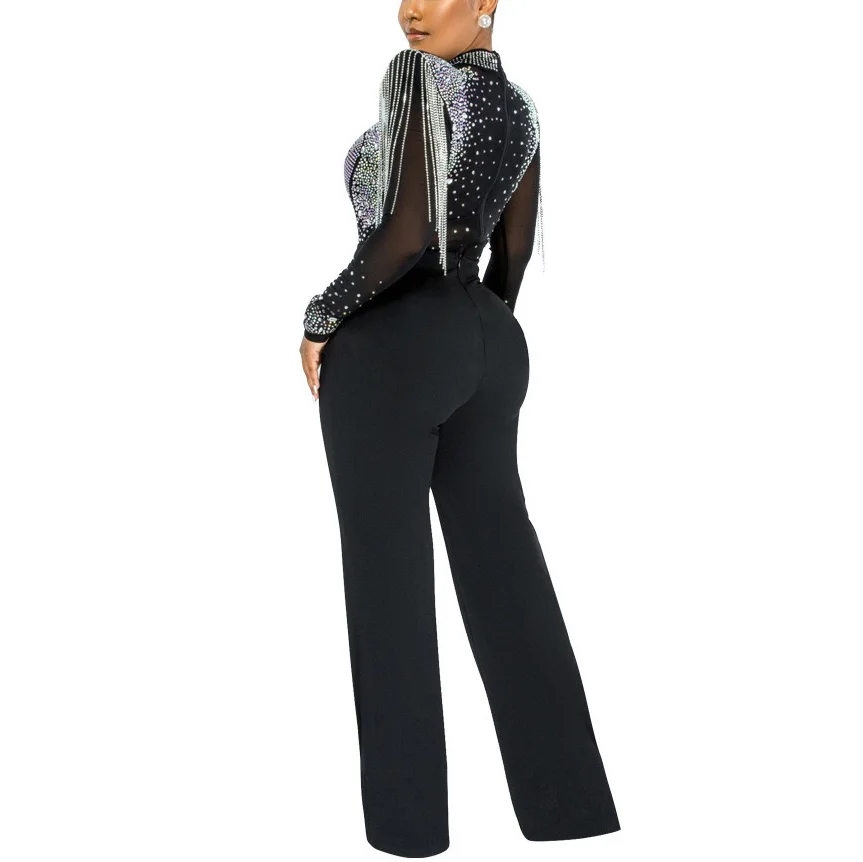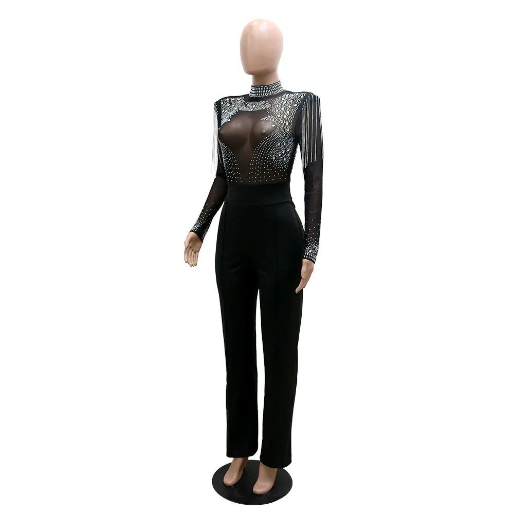 Fleepmart Sexy Jumpsuits 2022 New Arrivals Women Transparent Diamond Tassel High Waisted Elegant Evening Night Party Club Rompers Jumpsuit