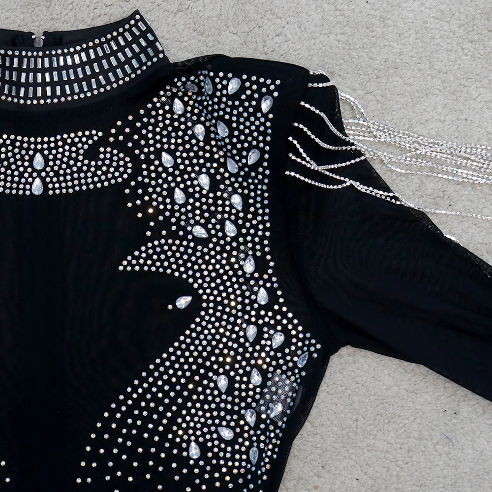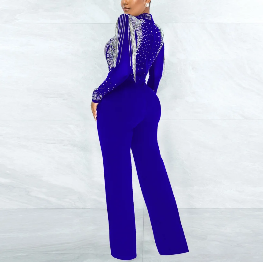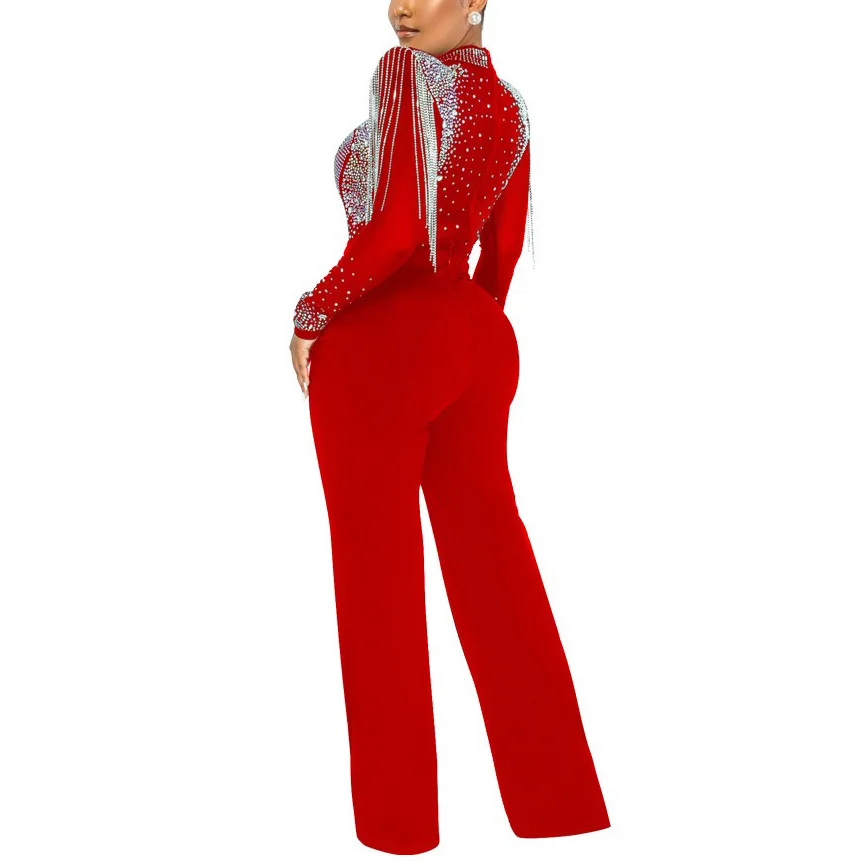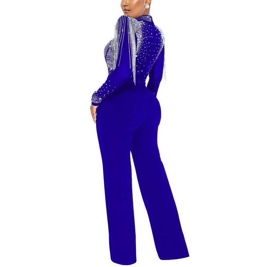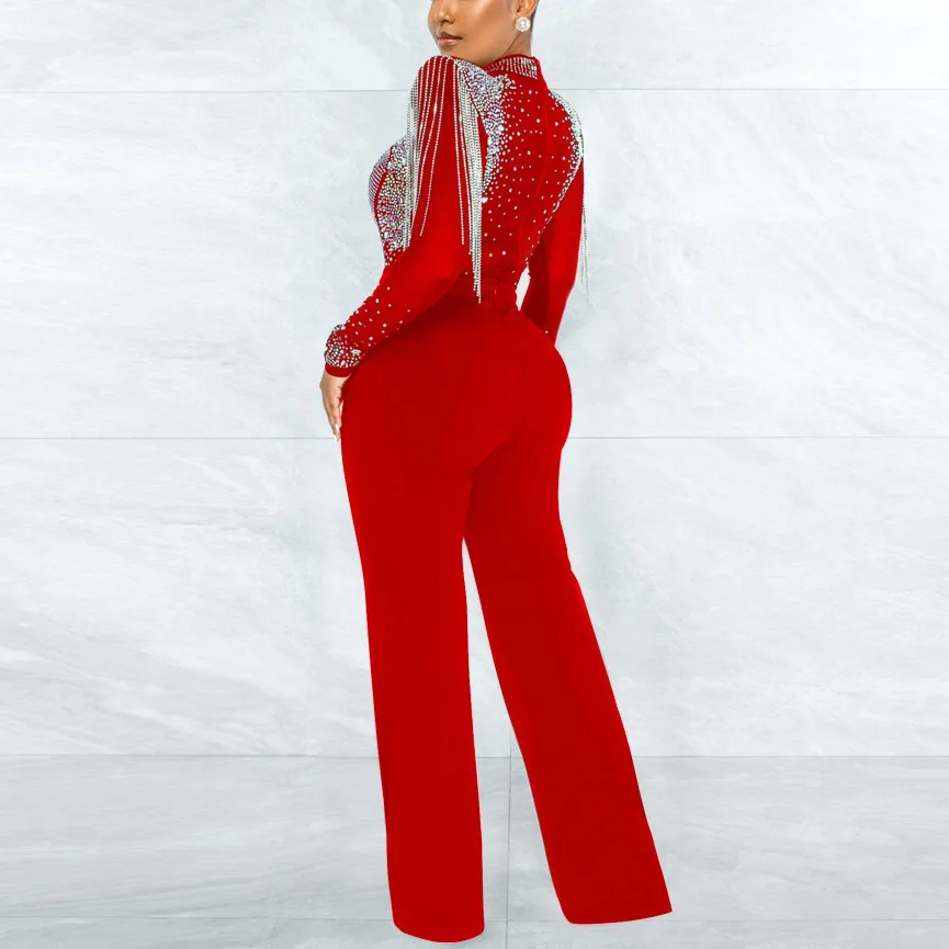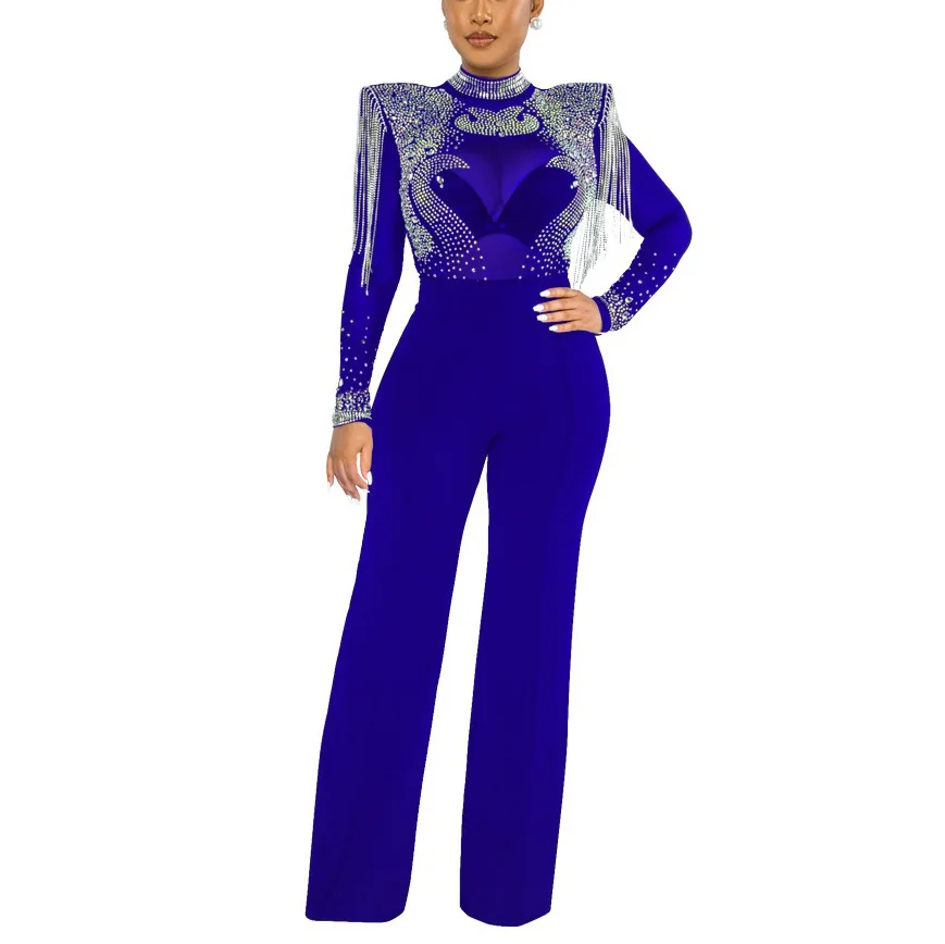 Fleepmart Sexy Jumpsuits 2022 New Arrivals Women Transparent Diamond Tassel High Waisted Elegant Evening Night Party Club Rompers Jumpsuit