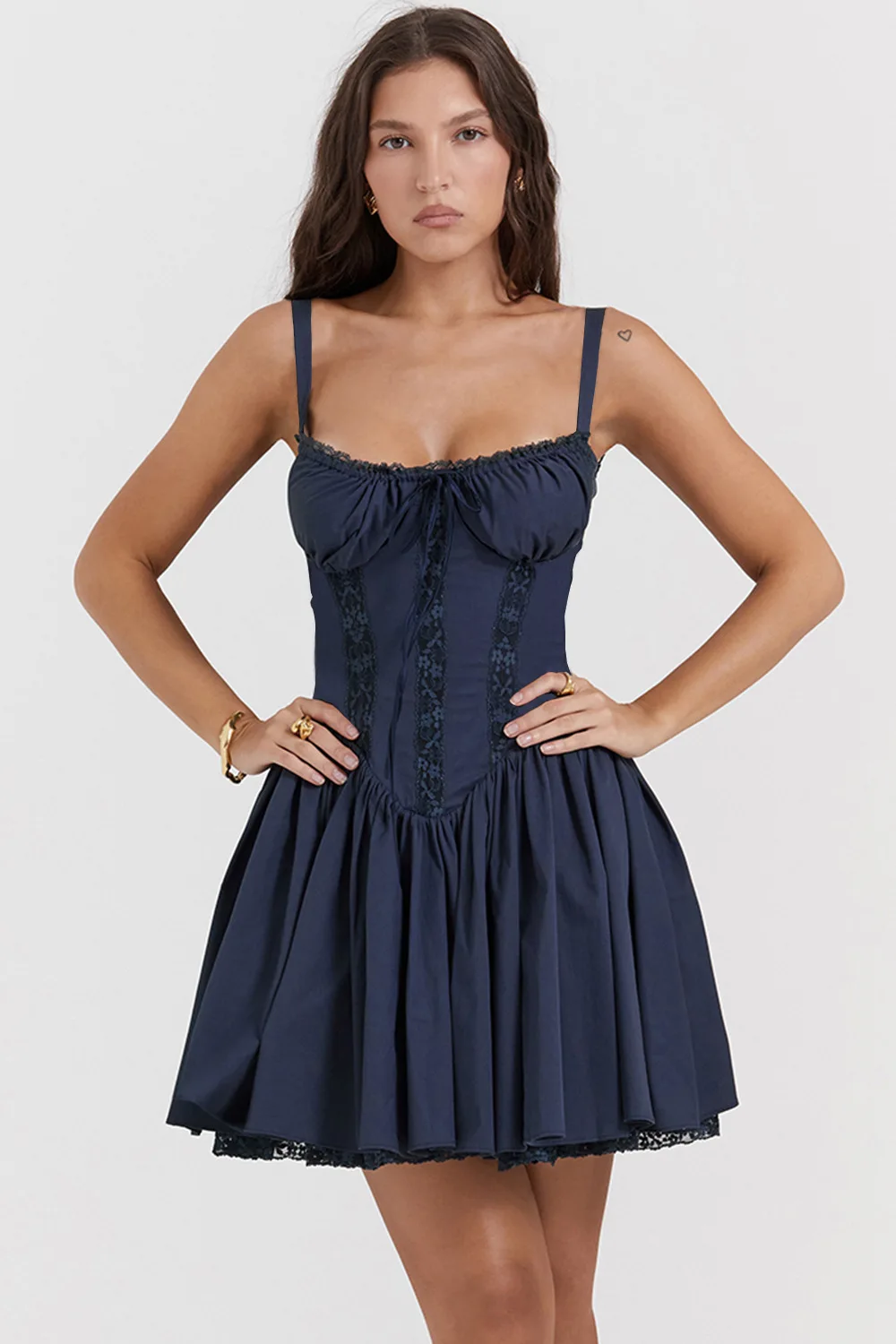 Fleepmart Sexy Lace Print Mini Long Sleeve Dress Female Elegant Square Collar Backless Ballet Party Dress
