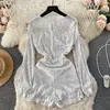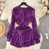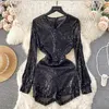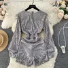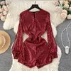 Fleepmart fleepmart Sexy Lantern Sleeve Jumpsuit Sequin Outfits Fashion Dress One Piece Women Short Wide Leg Bodysuit Ceremonial Bodysuits Ins