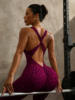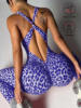 Fleepmart Sexy Leopard Print Sports Jumpsuits for Women V-neck Backless Yoga Bodysuit Female Sleeveless Tight Gym Running Fitness Overalls
