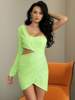 Fleepmart Sexy Light Green Cut Out Single Sleeve Glitter Glue Bead Material Bodycon Party Dress
