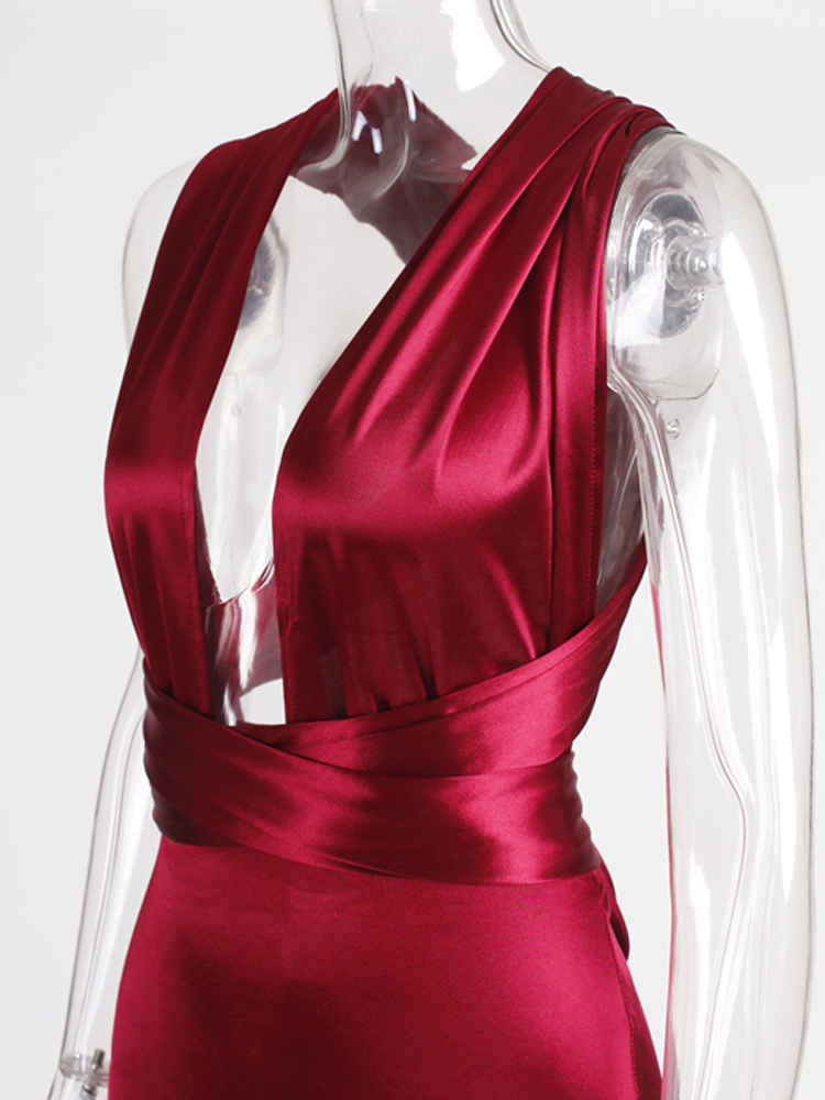 Fleepmart Sexy Mermaid Satin Dresses Floor Length Party Dress Hollow Out DIY Straps Bodycon Backless Maxi Dress