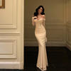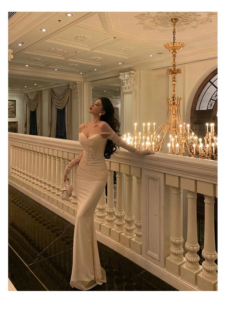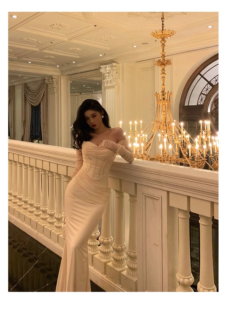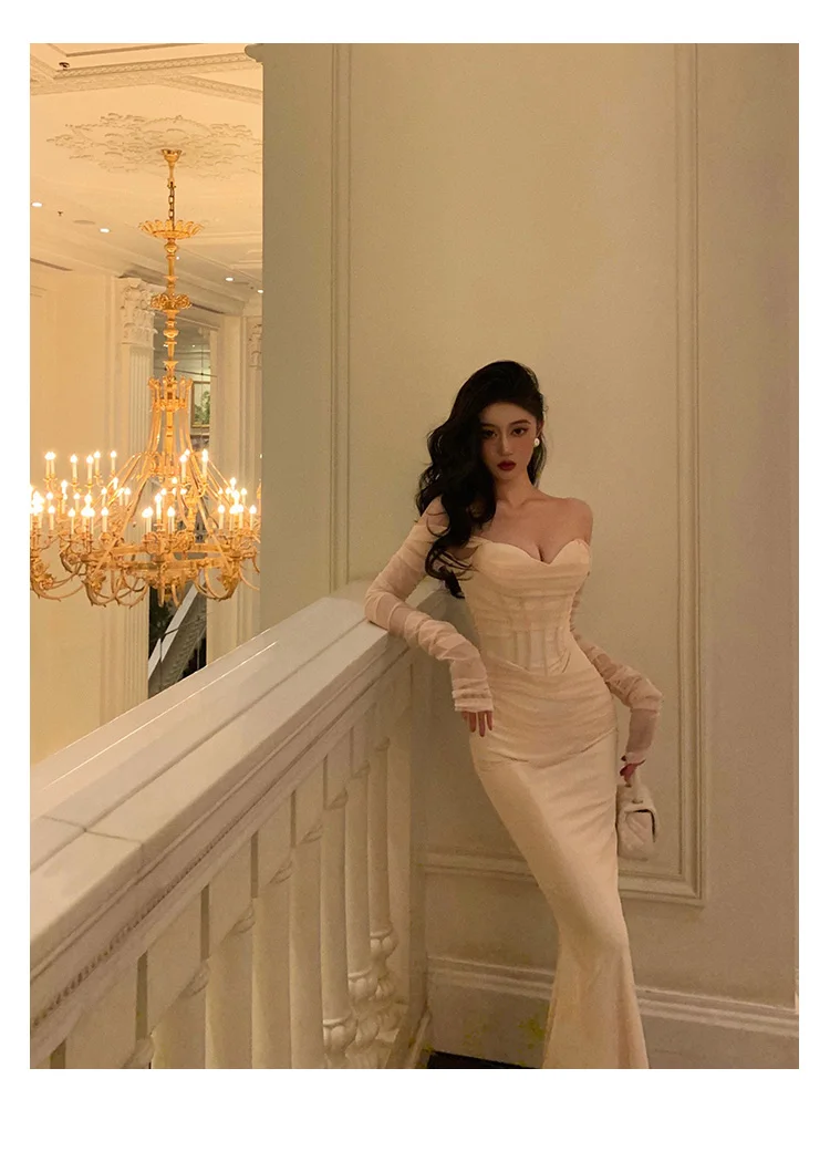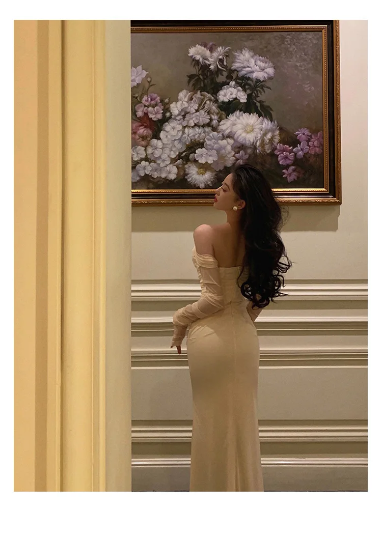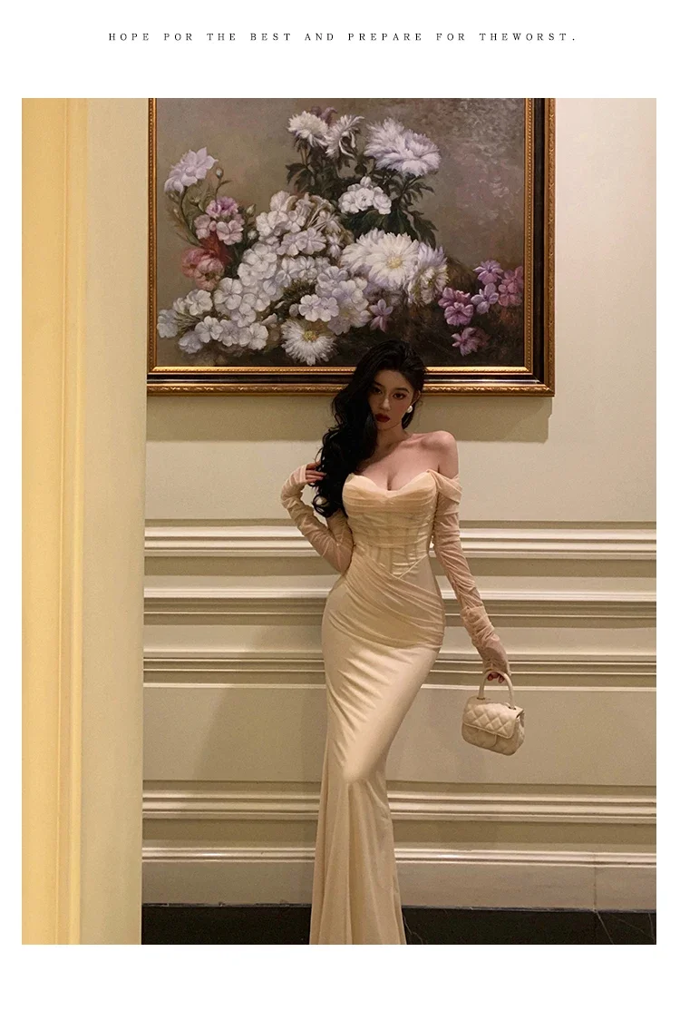 Fleepmart Sexy Mesh Off Shoulder Mermaid Dresses Elegant Bodycon Evening Party Prom Slim Dress Female Fashion Long Robe Clothes Autumn