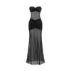 Fleepmart Sexy Mesh Women Long See Through Hollow Strapless Elastic Slim Fit Coquette Vacation Seaside Party Dress