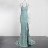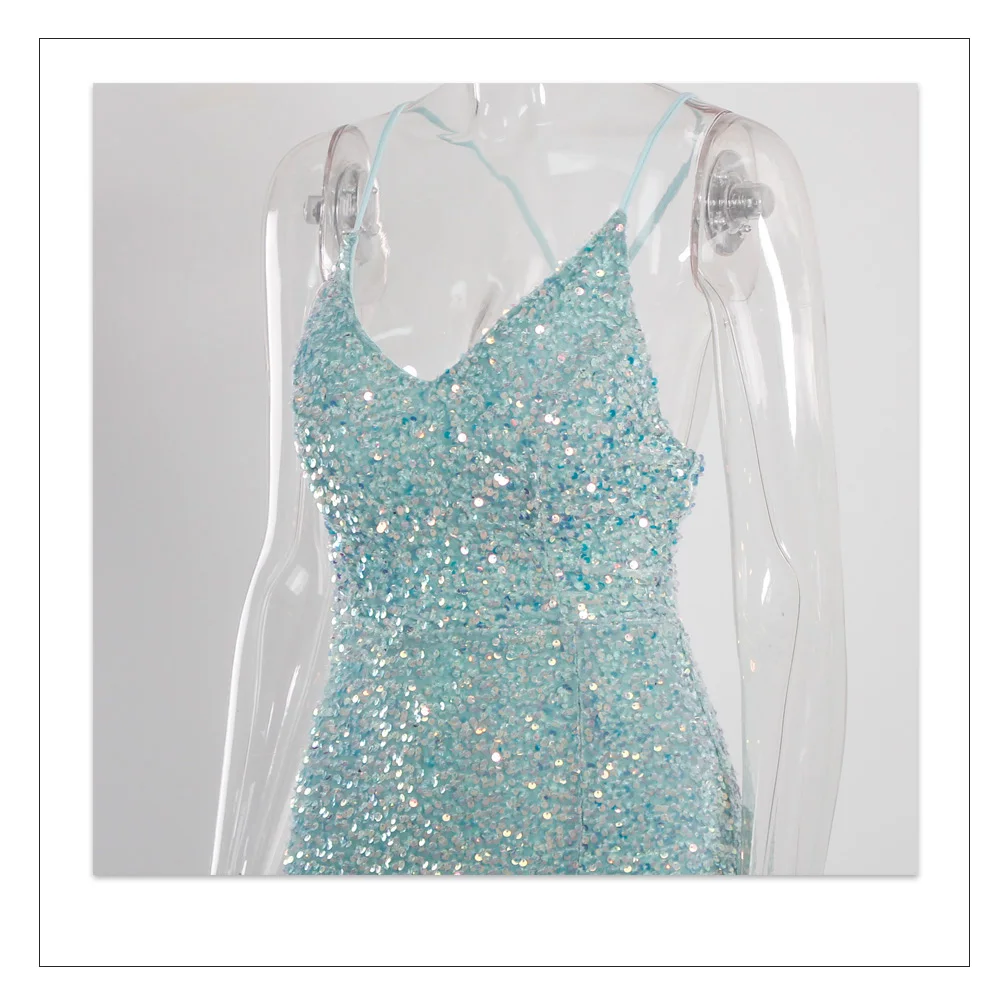 Fleepmart Sexy Mint Hollow Out Backless Slip Long Dress Stretchy Velvet High Slit Lace Up Summer Women Party Nightclub Graduation 2021