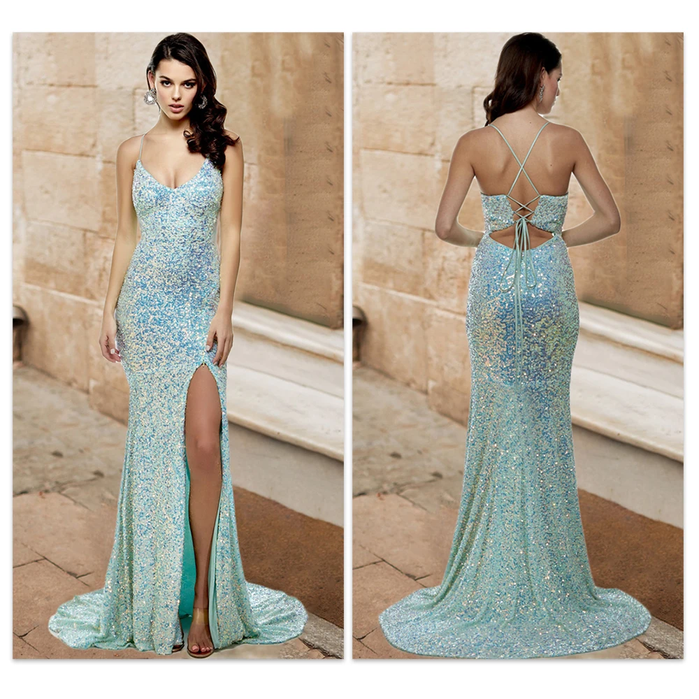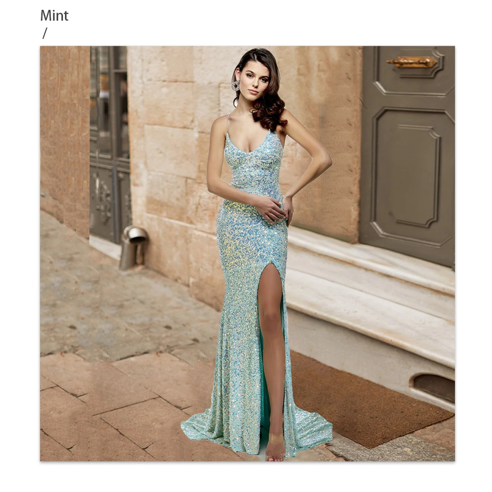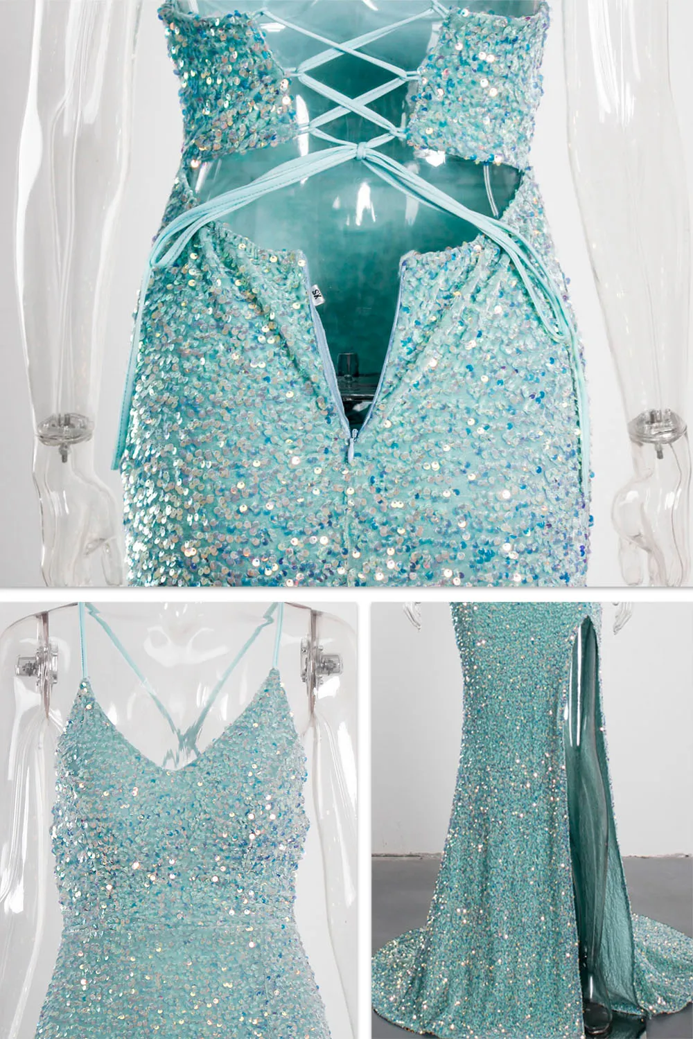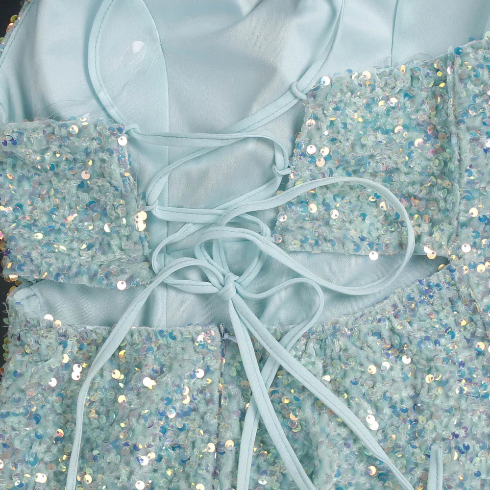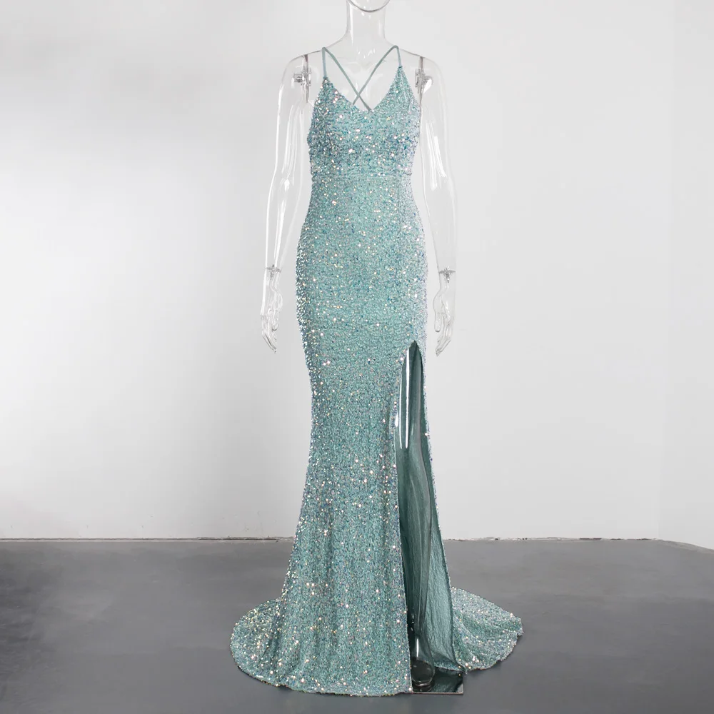 Fleepmart Sexy Mint Hollow Out Backless Slip Long Dress Stretchy Velvet High Slit Lace Up Summer Women Party Nightclub Graduation 2021 New