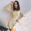 Fleepmart Sexy Nightclub Mini Short Party Dress Women Back Bandage O Neck A Line Flare Sleeves Autumn