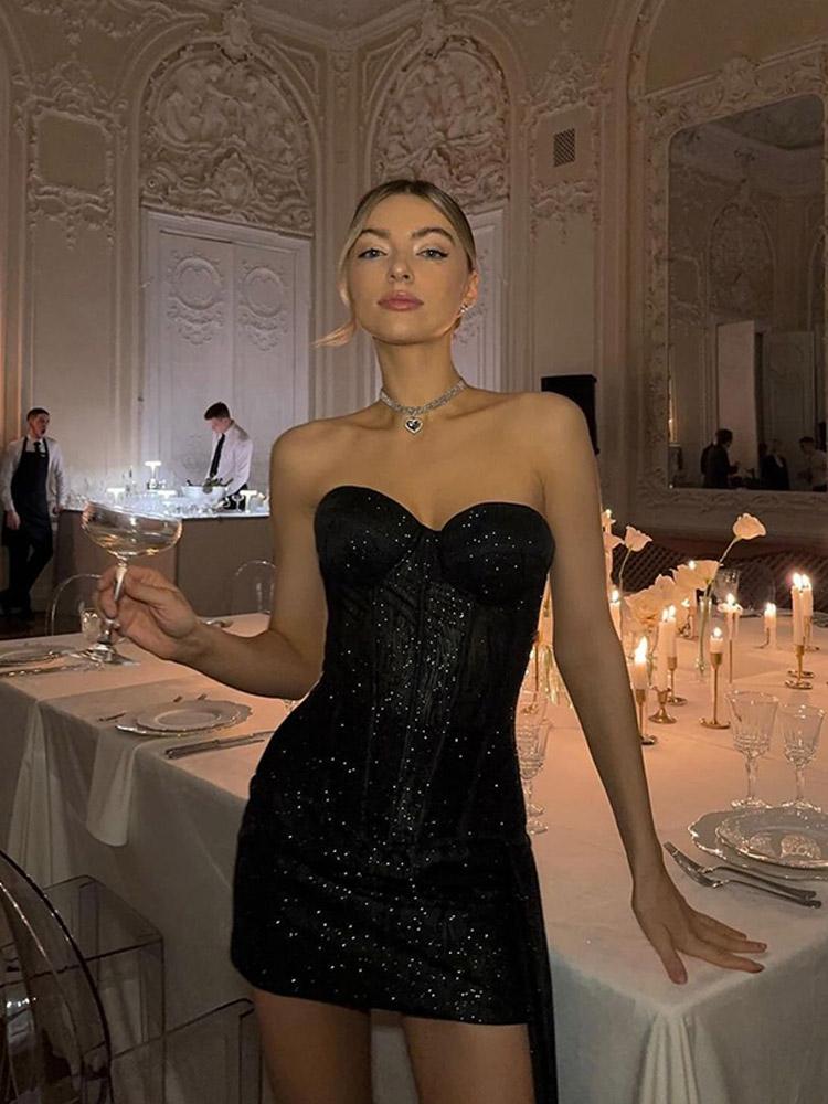 Fleepmart Sexy Off Shoulder Glitter Women Retract Waist Fold A-line Mini Dress Party Short Robe