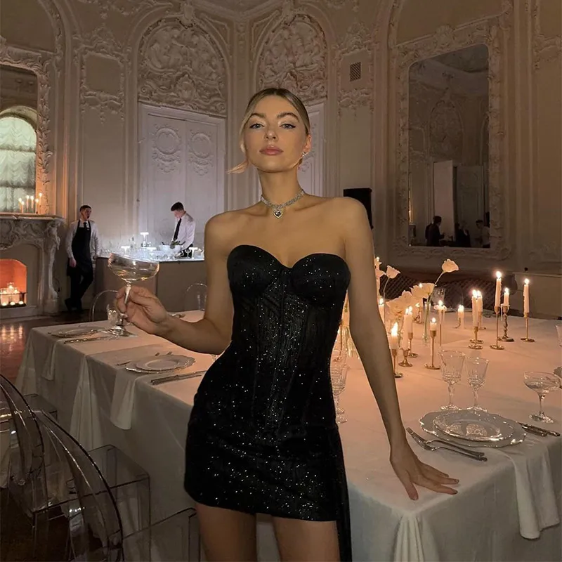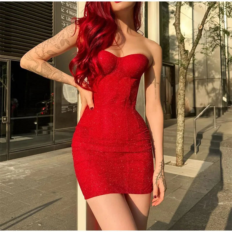 Fleepmart Sexy Off Shoulder Glitter Women Retract Waist Fold A-line Mini Dress Party Short Robe