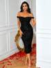 Fleepmart Sexy Off-The-Shoulder Black Sequined Sleeveless Corset Party Long Dress