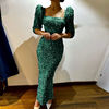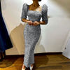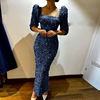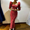 Fleepmart Sexy Open Back Sequined Midi Dress Half Sleeve Square Collar Mermaid Party Dress Gray Red Dress