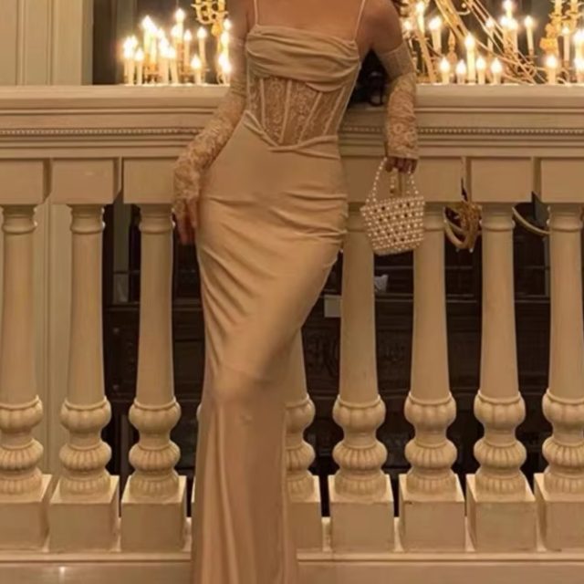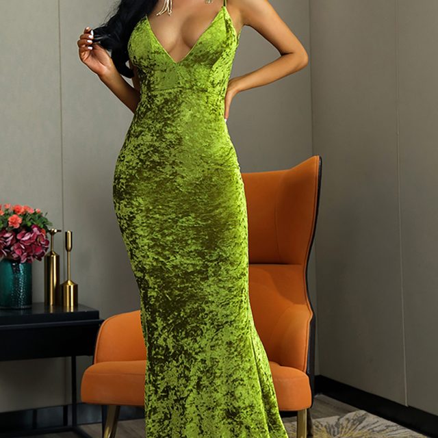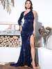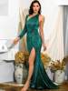 Fleepmart Sexy Open Back Single Sleeve Slim Fit Elastic Sequined Fabric Bodycon Going Out Long Dress