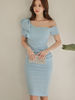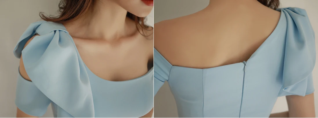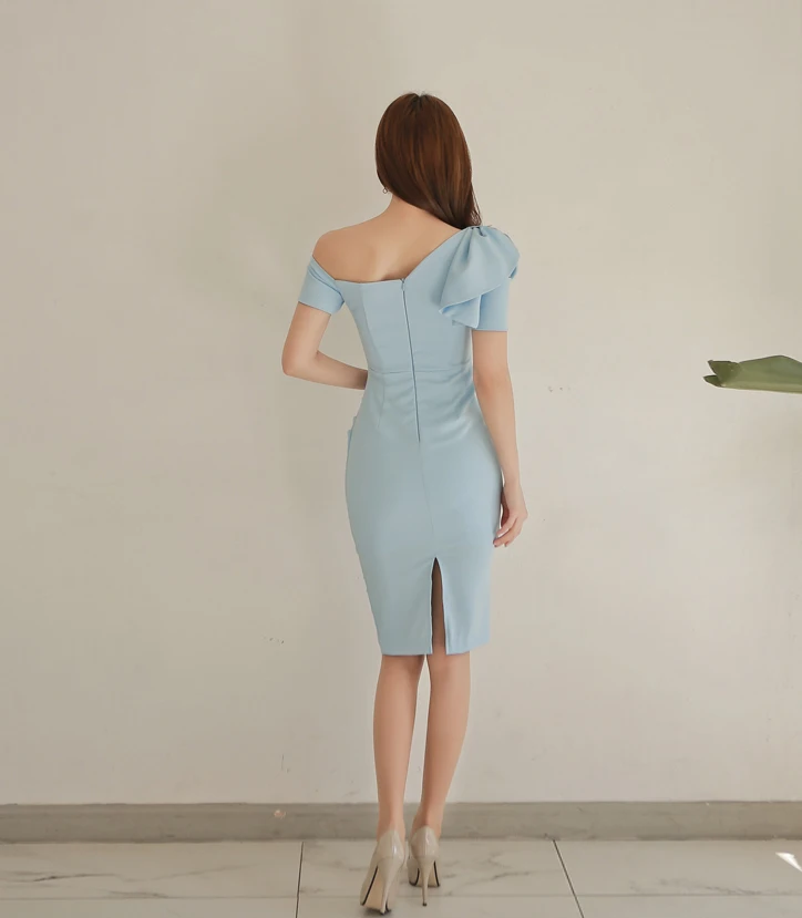 Fleepmart Sexy Party Dress Blue Bow One-shoulder Backless Pencil Dress 2023 Fashion Elegant Summer Slim Bodycon Club Dress