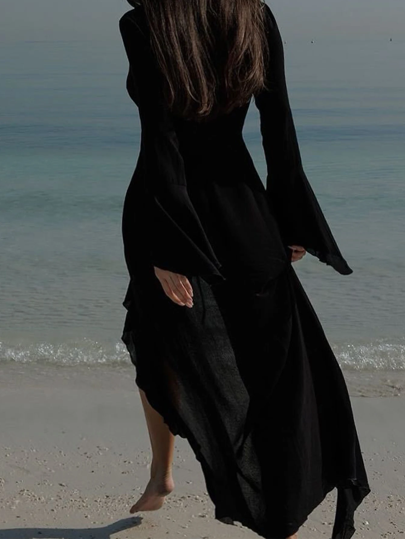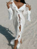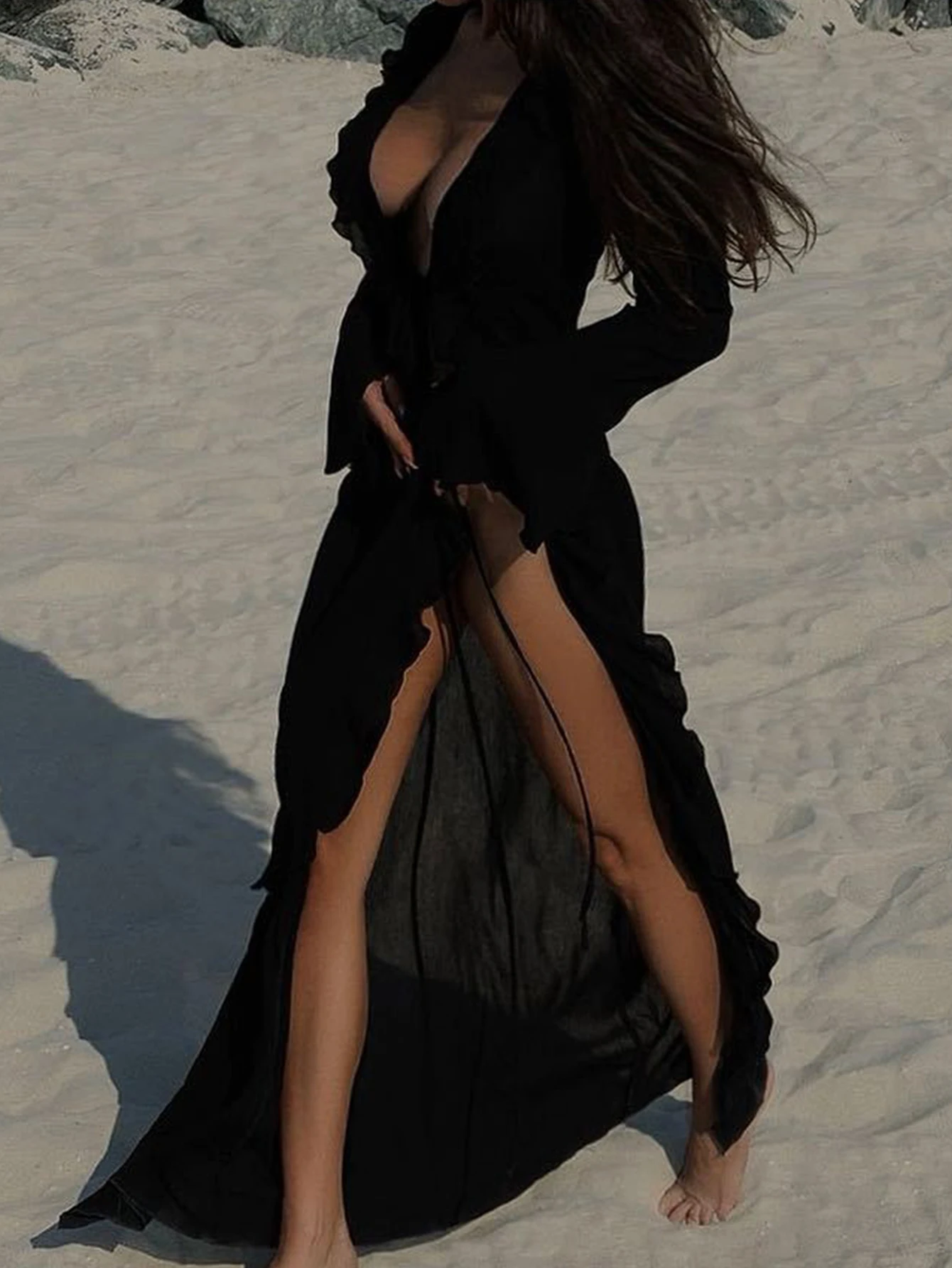 Fleepmart Sexy pink white ruffles maxi summer dress women see through beach dress woman clothing long sleeve evening party dresses vestido
