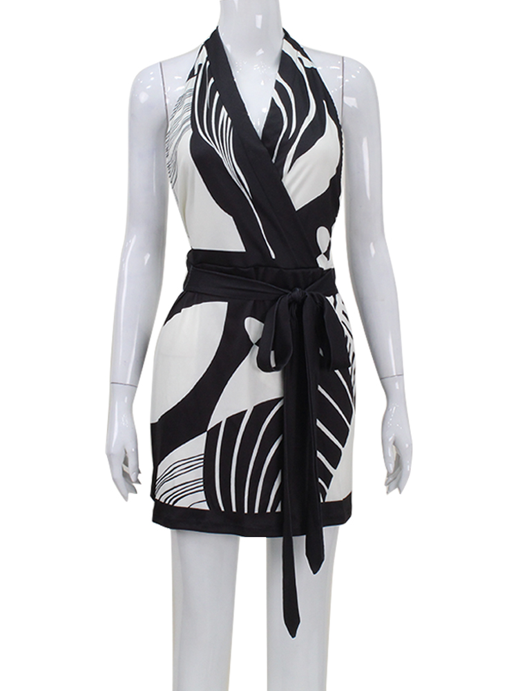 Fleepmart Sexy Printed Women Mini Dress Backless Streetwear Regular Casual Halter V-neck Slim Skinny Vestidos