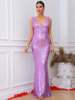 Fleepmart Sexy Purple Deep V-Neck Tube Top Sleeveless Geometric Fishtail Floor Stretch Sequin Party Maxi Dress