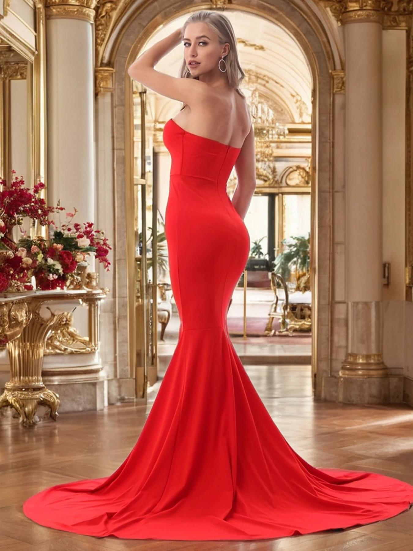 Fleepmart Sexy Red Strapless Slit Leg Long Mermaid Stretchy Formal Evening Party Dress Elegant Bodycon Sleeveless Open Back Women Dresses