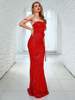 Fleepmart Sexy Red Tube Top Open Back Cross Straps Fishtail Shape Sequin Wedding Maxi Dress