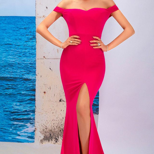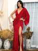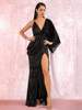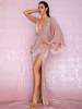 Fleepmart Sexy Rose Gold V-Neck Single Sleeve Sequins Split Party Maxi Dress