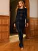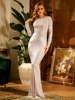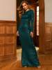Fleepmart Sexy Round Neck Backless Green Elastic Sequin Bodycon Fishtail Maxi Dress